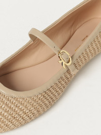 Carla leather-trimmed raffia Mary Jane ballet flats Neutral