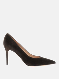 DESCRIPTION - Lining: With logo - Toe: Almond - Sole: Leather - Heel: undefined - Materials: Suede calfskin - Pattern: Plain-colored DETAILS AND CARE Composition not available SIZE AND FIT Sizes Heel: 8,5 cm Designer code: G2458085RICCAM MOKA Giglio Code: H19594 Designer: Gianvito Rossi Collection: Gianvito Rossi Woman Category: Shoes Gianvito Rossi