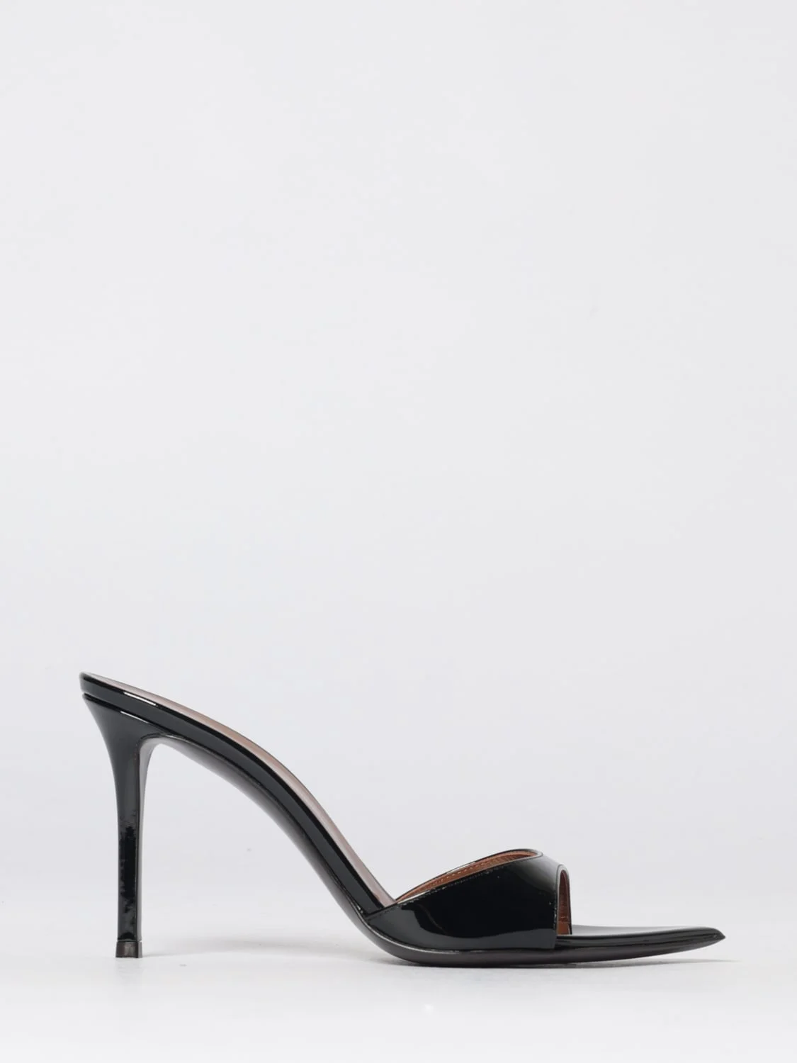 DESCRIPTION - Style: Elegant, Minimal - Lining: Leather, With logo - Model: Slip on - Toe: Almond, Open - Heel: Open, Tacco alto a stiletto - Sole: Leather - Occasion: Special occasions - Materials: Laminated leather - Pattern: Plain-colored DETAILS AND CARE Composition GENERAL LEATHER 100 - SIZE AND FIT Sizes Heel: 9 cm Designer code: I400007 005 Giglio Code: H86902 Designer: Giuseppe Zanotti Collection: Giuseppe Zanotti Woman Category: Shoes Giuseppe Zanotti