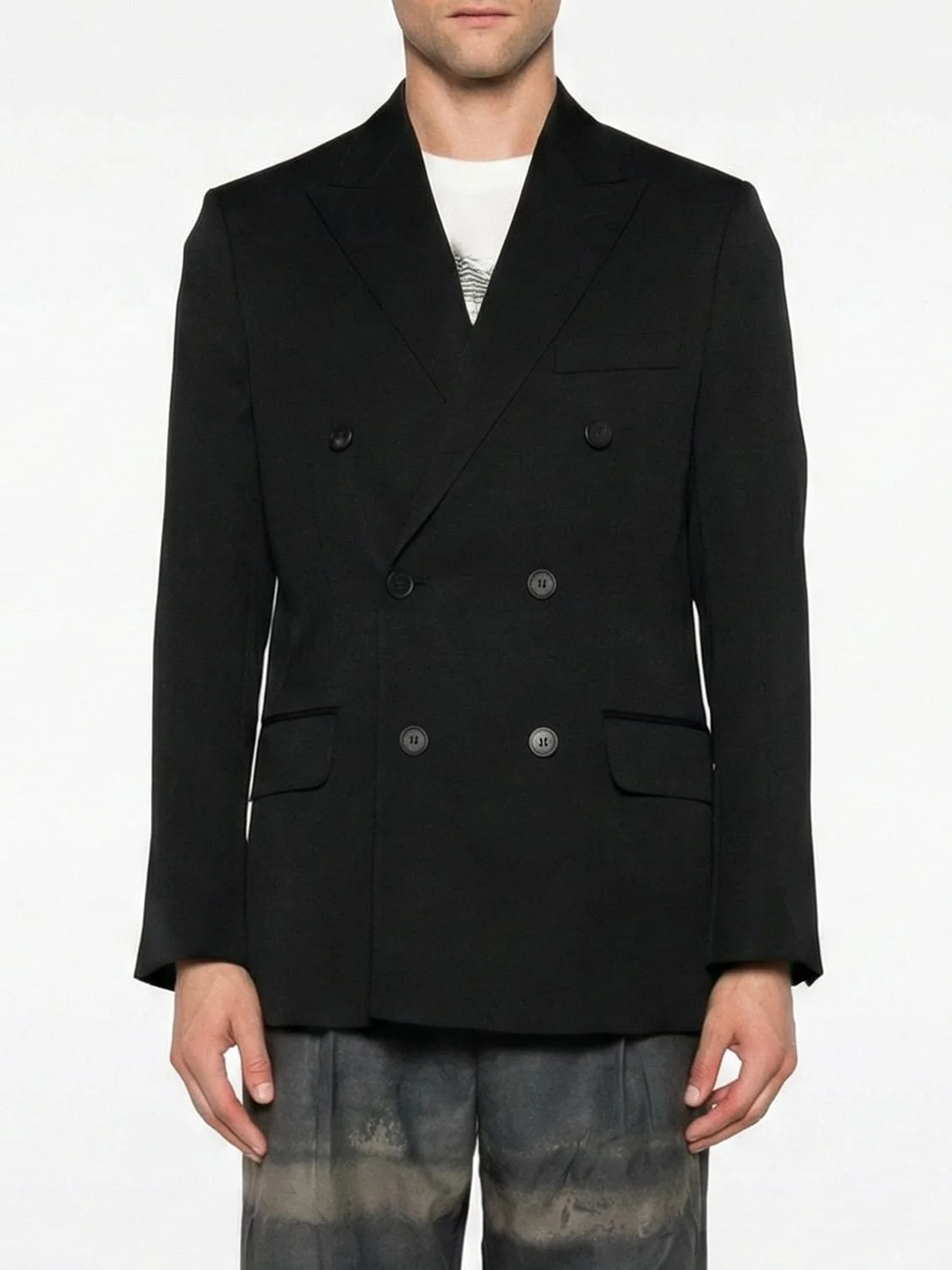 Men’s black double-breasted blazer with button fastening