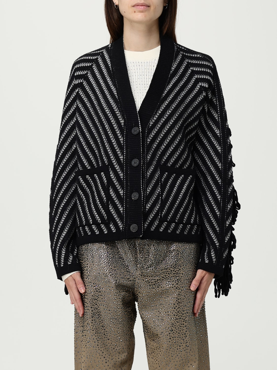 DESCRIPTION - Style: Classic - Details: With fringes - Neckline: V neckline - Shoulders: Relaxed - Sleeves: Long - Closure: With buttons - Pockets: Patch pocket - Bottom: With straight hemline - Materials: Virgin wool - Pattern: Embroidery, Stripes DETAILS AND CARE Composition VIRGIN WOOL 100% SIZE AND FIT Sizes not available Size and fit Relaxed fit Designer code: GWP02384P00210780203 Giglio Code: 432116 Designer: Golden Goose Collection: Golden Goose Woman Category: Clothing Golden Goose