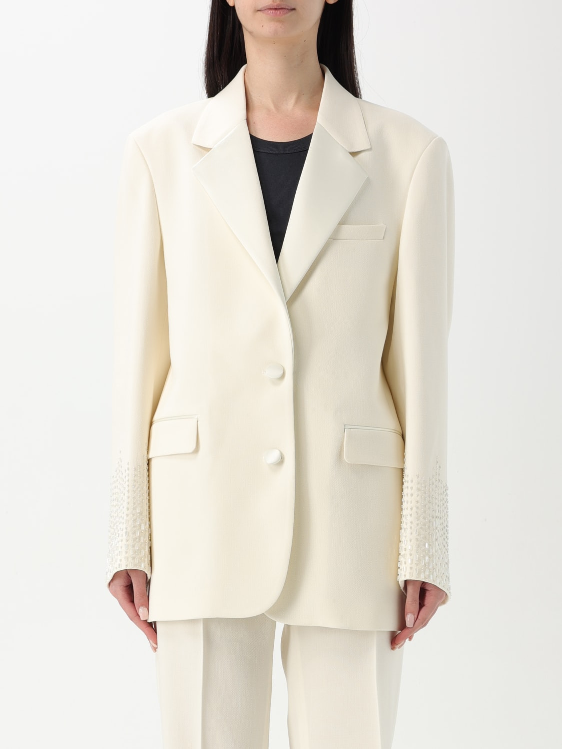 Single-breasted oversize jacket in white with silk effect and embroidery