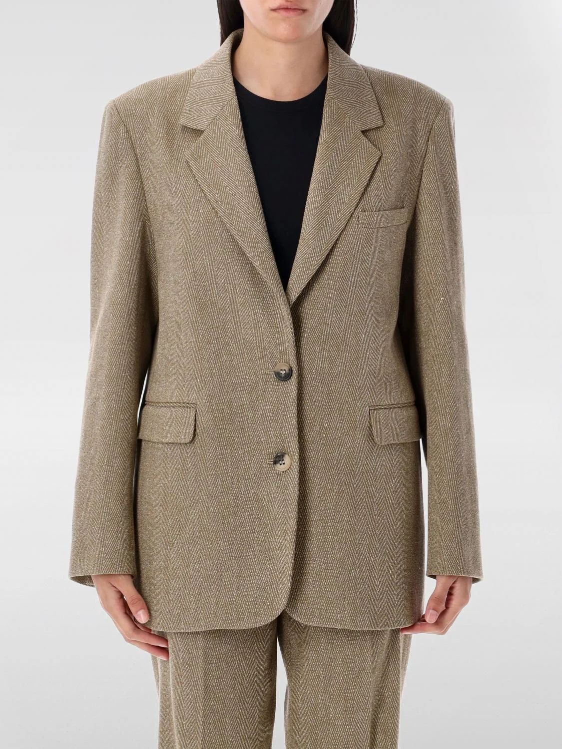 Women's single-breasted blazer in sand-colored herringbone