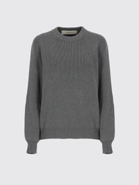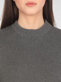 Women's round-neck sweater in dark gray cotton with logo on the back