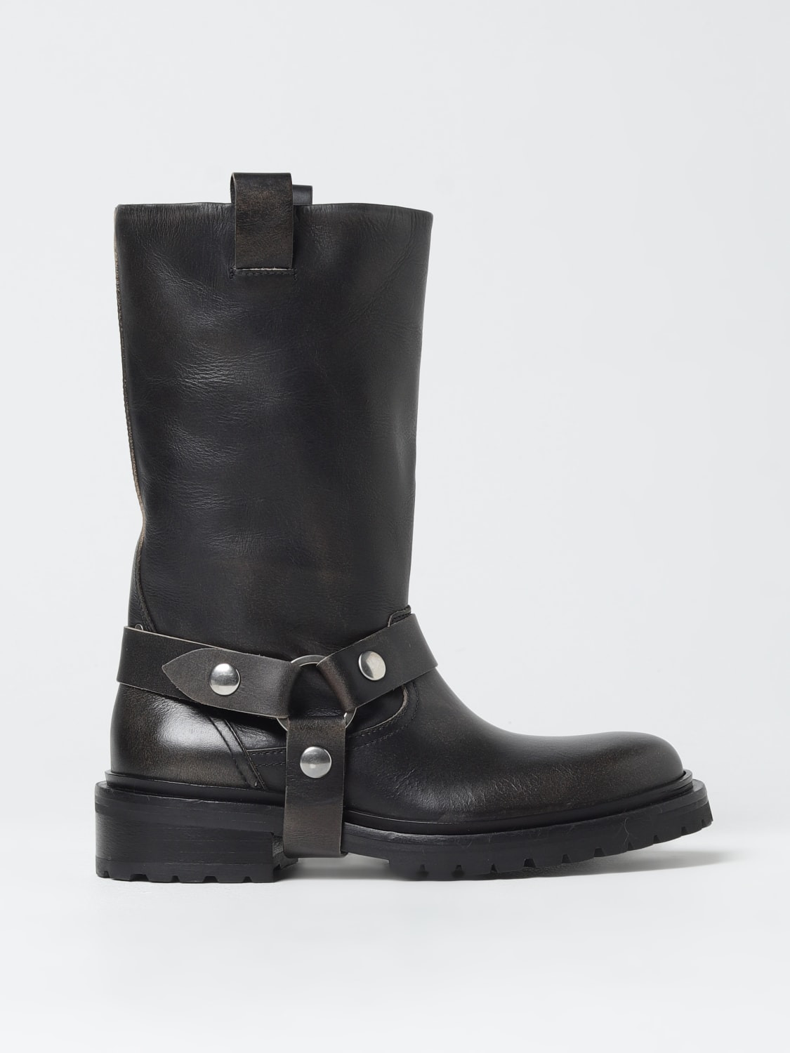 DESCRIPTION - Details: With metallic ring, With double tab - Lining: Leather, With logo - Model: Slip on - Toe: Round - Shaft: Calf-length - Sole: Dented tread, Rubber - Heel: Low - Materials: Calfskin, Aged leather - Pattern: Plain-colored DETAILS AND CARE Composition Furs & Skins->Leather100 % SIZE AND FIT Sizes not available
