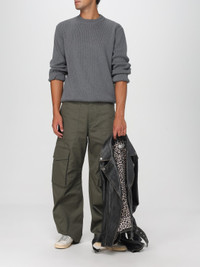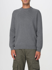 Men's round-neck sweater in dark gray cotton with logo on the back