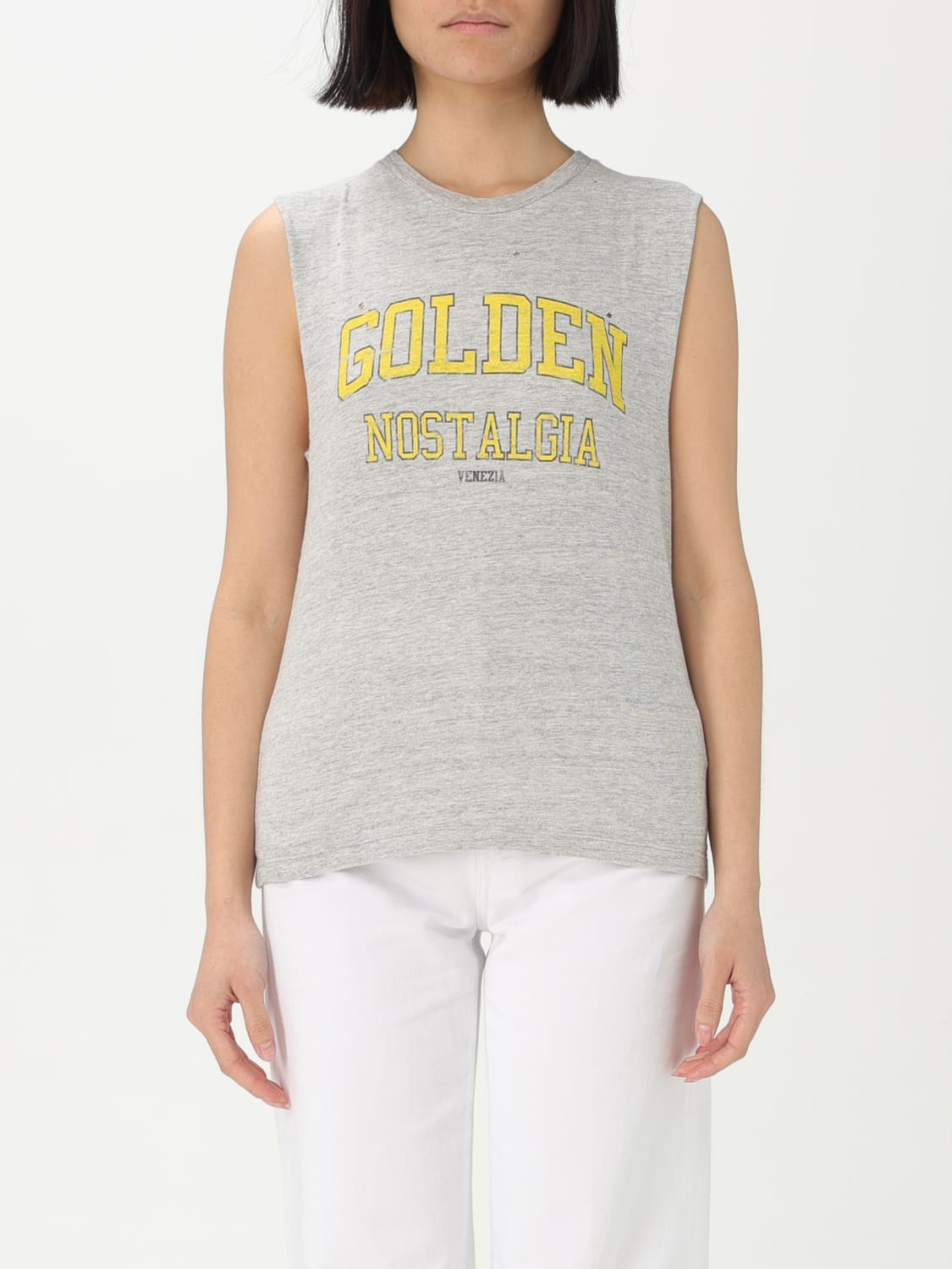 DESCRIPTION Editorial Notes T-shirt woman Golden Goose - Style: Casual - Logo: Contrasting, Lettering - Neckline: Crewneck - Shoulders: Regular - Sleeves: Sleeveless - Bottom: With straight hemline - Materials: Cotton - Pattern: All-over logo DETAILS AND CARE Composition COTTON 100% SIZE AND FIT Sizes not available Size and fit Regular fit