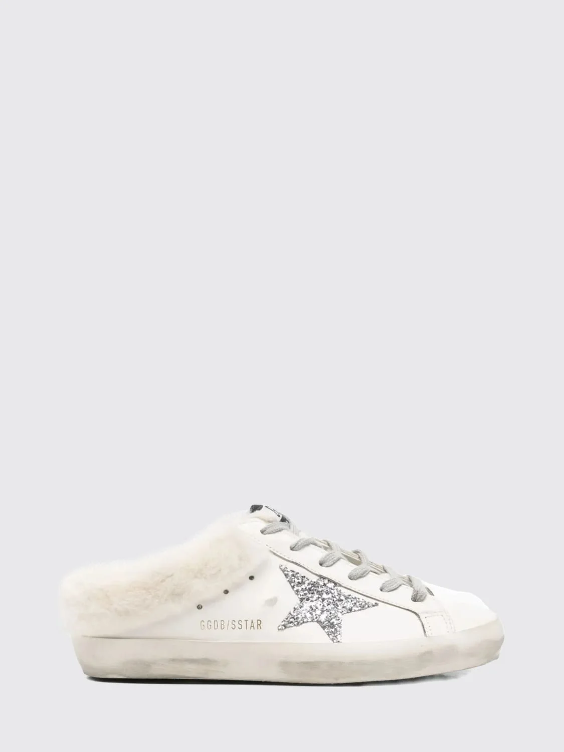 Super-Star Sabots in white leather with shearling lining and silver star