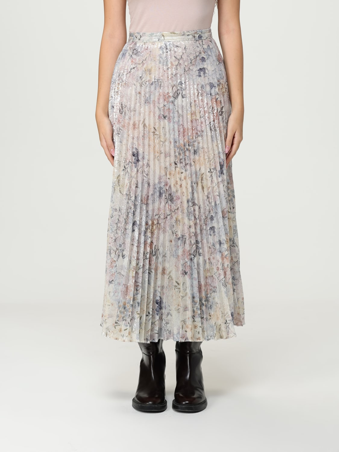 Women's long pleated skirt with multicolor floral sequin print