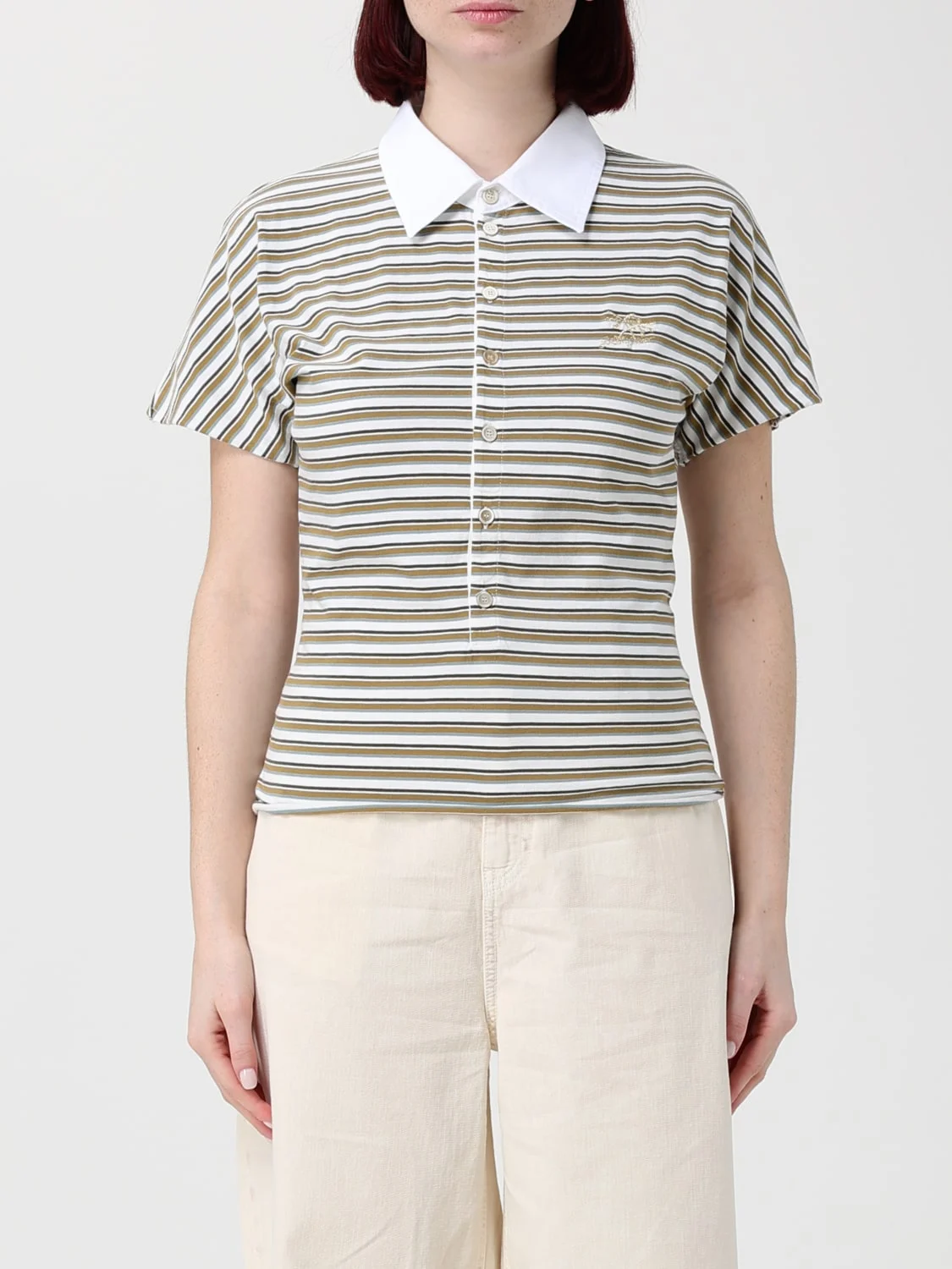 Women's polo T-shirt in striped jersey with contrast collar