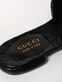 DESCRIPTION - Logo: Gucci GG monogram - Lining: Leather, With logo - Model: Slip on - Toe: Open, Squared - Sole: Leather - Heel: Low - Materials: Padded Nappa leather - Pattern: All-over monogram DETAILS AND CARE Composition not available SIZE AND FIT Sizes not available Designer code: 816330AAEA2 1000 Giglio Code: G71269 Designer: Gucci Collection: Gucci Woman Category: Shoes Gucci