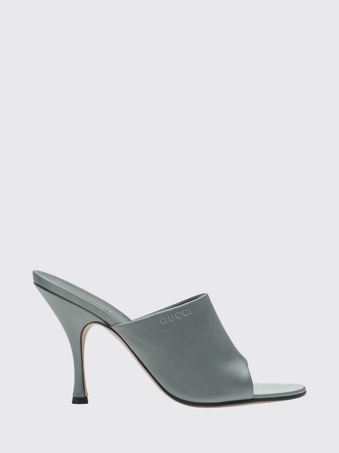 DESCRIPTION - Style: Chic - Occasion: Ceremony and cocktail, Evening and party - Logo: Embroidered, Tone-on-tone - Lining: Leather, Satin, With logo - Model: Slip on - Toe: Open, Round - Heel: Open, Tacco alto a stiletto - Sole: Leather - Materials: Satin - Pattern: Plain-colored DETAILS AND CARE Composition not available SIZE AND FIT Sizes Heel: 9,5 cm Designer code: 856997F1400 1601 Giglio Code: I00836 Designer: Gucci Collection: Shoes Gucci Category: Shoes > Heeled sandal