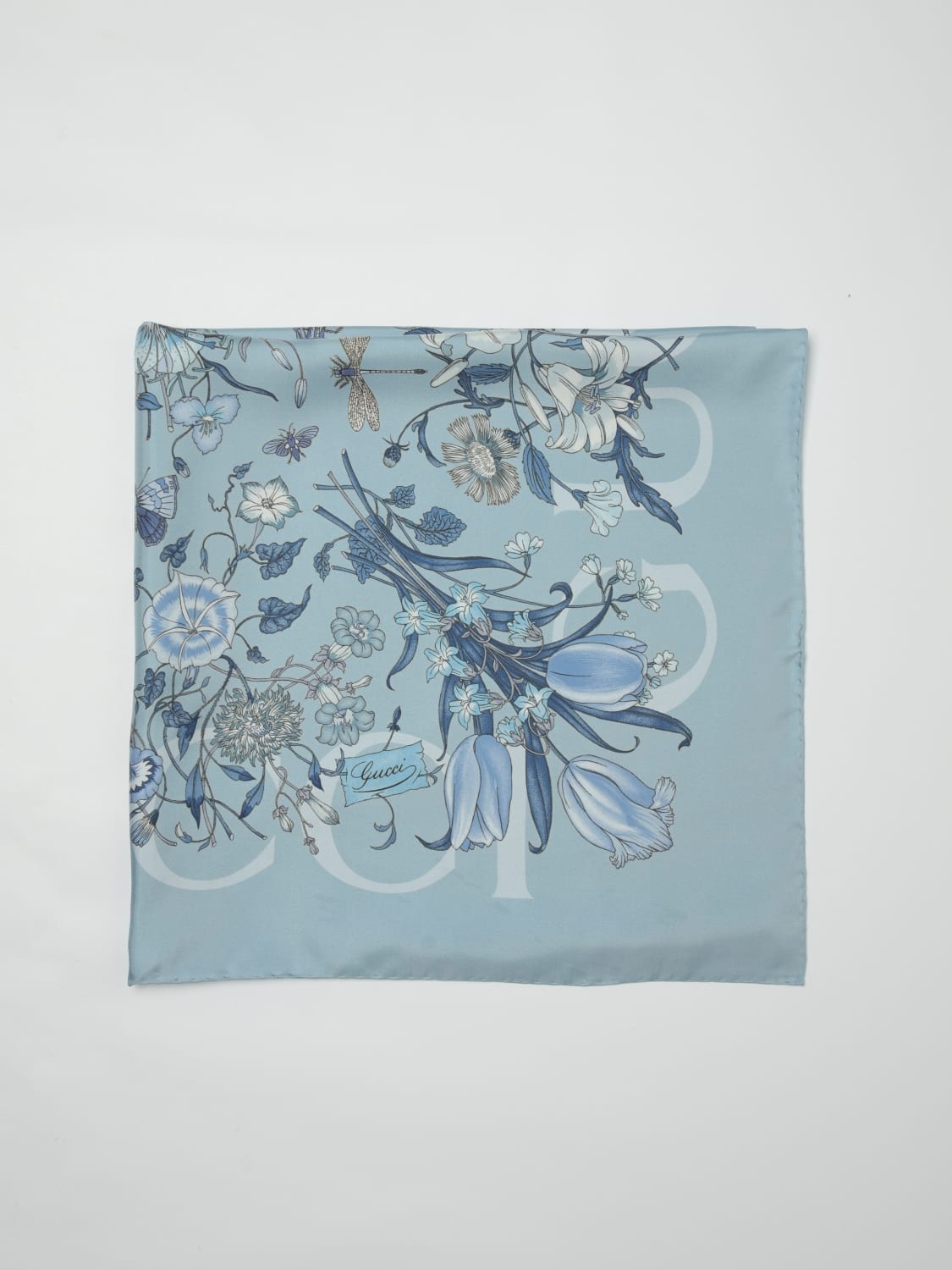 DESCRIPTION - Logo: Lettering, Print - Bottom: With straight hemline - Shape: Squared - Materials: Silk - Pattern: Floral DETAILS AND CARE Composition Silk fabric Wash and Care Dry clean SIZE AND FIT Sizes not available Designer code: 8100423G001 4969 Giglio Code: 426285 Designer: Gucci Collection: Gucci Woman Category: Accessories Gucci