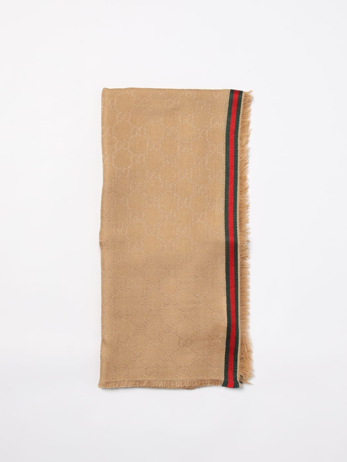 DESCRIPTION - Logo: Gucci GG monogram, Jacquard - Model: Classic - Bottom: Fringed - Shape: Rectangular - Measurements: Width: 75 cm - Materials: Silk, Cotton - Pattern: Plain-colored DETAILS AND CARE Composition SILK/COTTON Wash and Care Dry clean SIZE AND FIT Sizes not available Designer code: 7952844G483 9566 Giglio Code: 415068 Designer: Gucci Collection: Gucci Men Category: Accessories Gucci