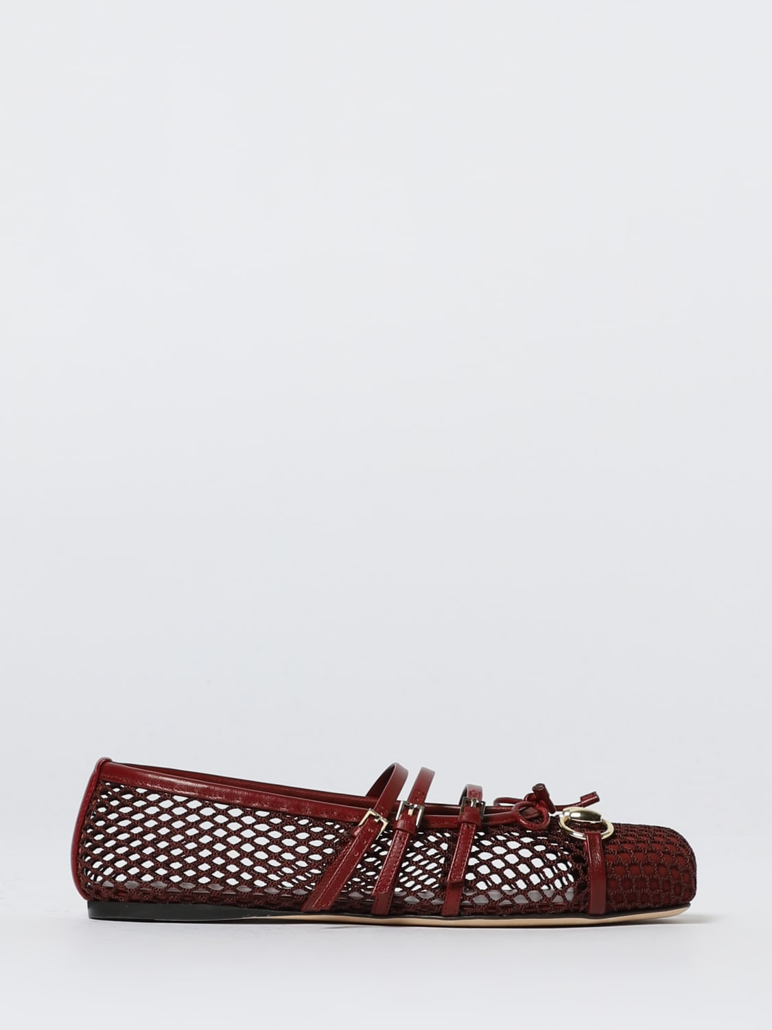 DESCRIPTION - Style: Contemporary - Details: Horsebit Gucci, With adjustable bands, With bow - Lining: Leather, Nylon, With logo - Model: Mary Jane, Pierced - Toe: Squared - Sole: Leather - Occasion: Morning - Materials: Fishnet nylon - Pattern: Plain-colored DETAILS AND CARE Composition T 100% POLYAMIDE SIZE AND FIT Sizes not available Designer code: 835077FAEQZ 6207 Giglio Code: 432871 Designer: Gucci Collection: Gucci Woman Category: Shoes Gucci