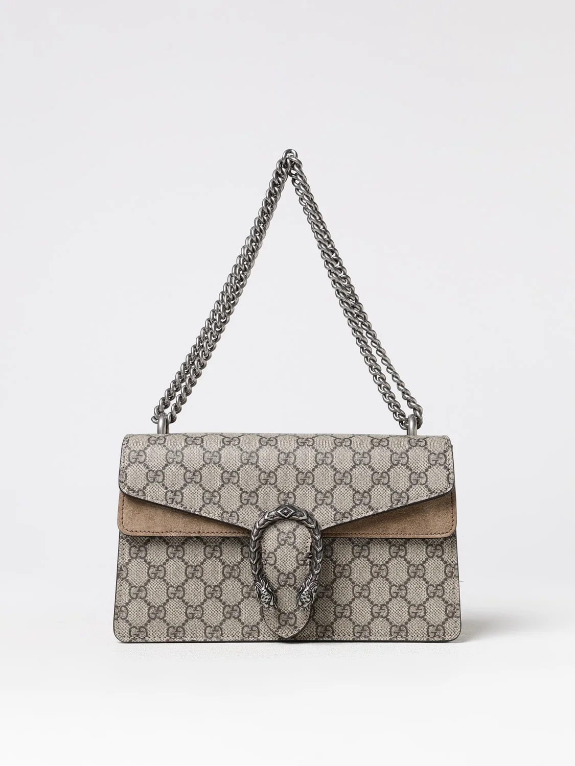 DESCRIPTION - Logo: Gucci GG monogram - Model: Shoulder - Closure: With snap buckle - Shape: Rectangular - Shoulder strap: Sliding - Measurements: Shoulder strap length from shoulder: 37 cm - Materials: Suede calfskin - Pattern: Monogram DETAILS AND CARE Composition T 60% POLYURETHANE T 20% COTTON T 20% SIZE AND FIT Sizes Width : 27,5 cm Height: 16,5 cm Depth: 9,5 cm Designer code: 400249KHNRN 8642 Giglio Code: 414977 Designer: Gucci Collection: Gucci Woman Category: Bags Gucci