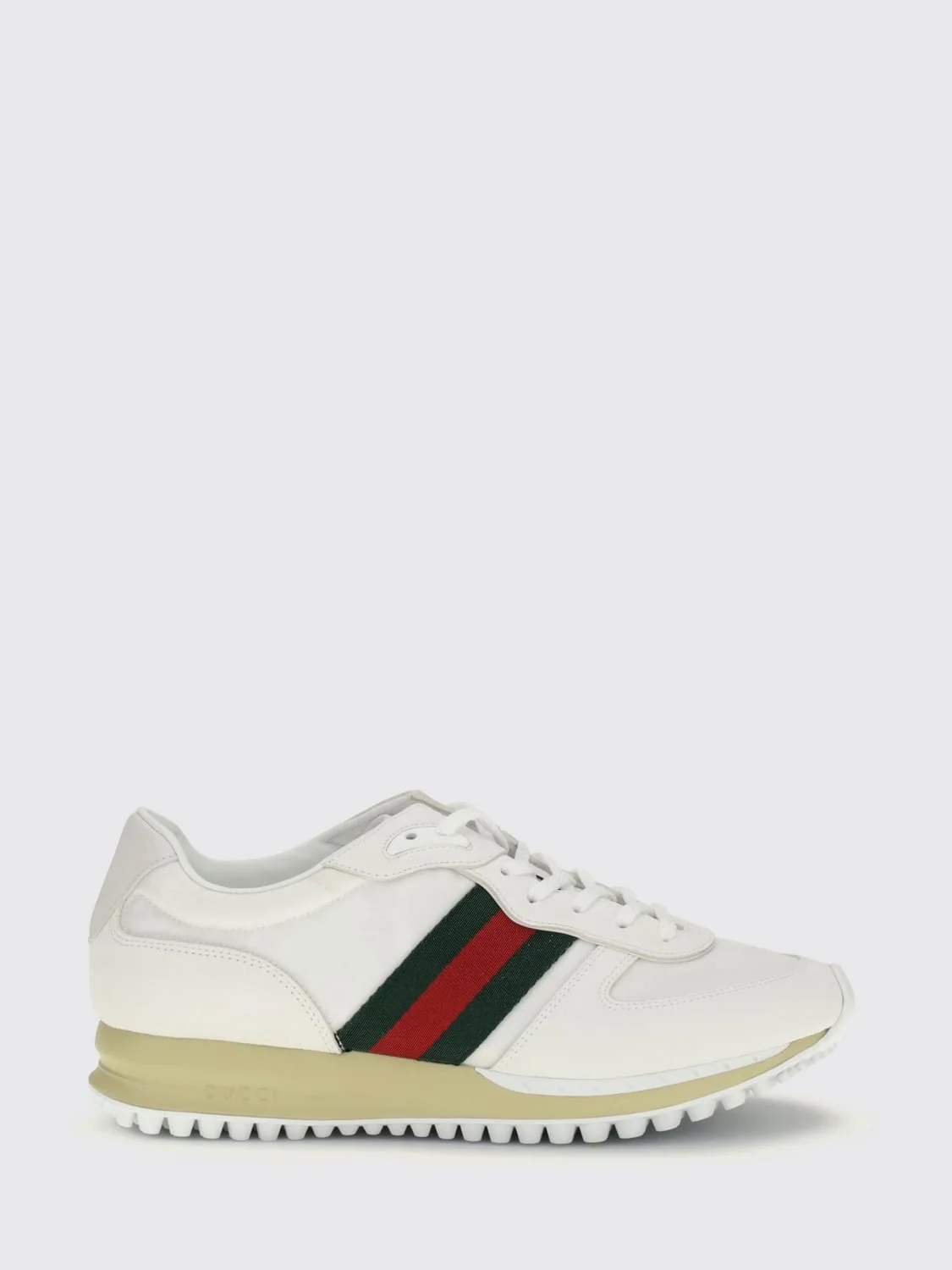 DESCRIPTION - Logo: Contrasting, Gucci GG monogram, Jacquard, Web Gucci - Lining: Leather, With logo - Model: Lace up - Toe: Round - Ankle: Low top, Padded - Sole: Dented tread, Rubber - Materials: Smooth calfskin, Suede calfskin - Pattern: Logo DETAILS AND CARE Composition CALF SKIN SIZE AND FIT Sizes not available Designer code: 832461AAEW3 9045 Giglio Code: 432922 Designer: Gucci Collection: Gucci Men Category: Shoes Gucci