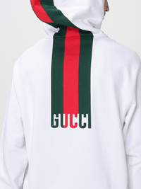 DESCRIPTION - Style: Classic, Sporty - Model: With hood - Shoulders: Relaxed - Sleeves: Long - Cuffs: Stretch - Pockets: Kangaroo pocket - Bottom: With straight hemline - Materials: Cotton - Pattern: Striped DETAILS AND CARE Composition 100% Cotone SIZE AND FIT Sizes not available Size and fit Regular fit Designer code: 814900XJG2U 9074 Giglio Code: G89304 Designer: Gucci Collection: Gucci Men Category: Clothing Gucci