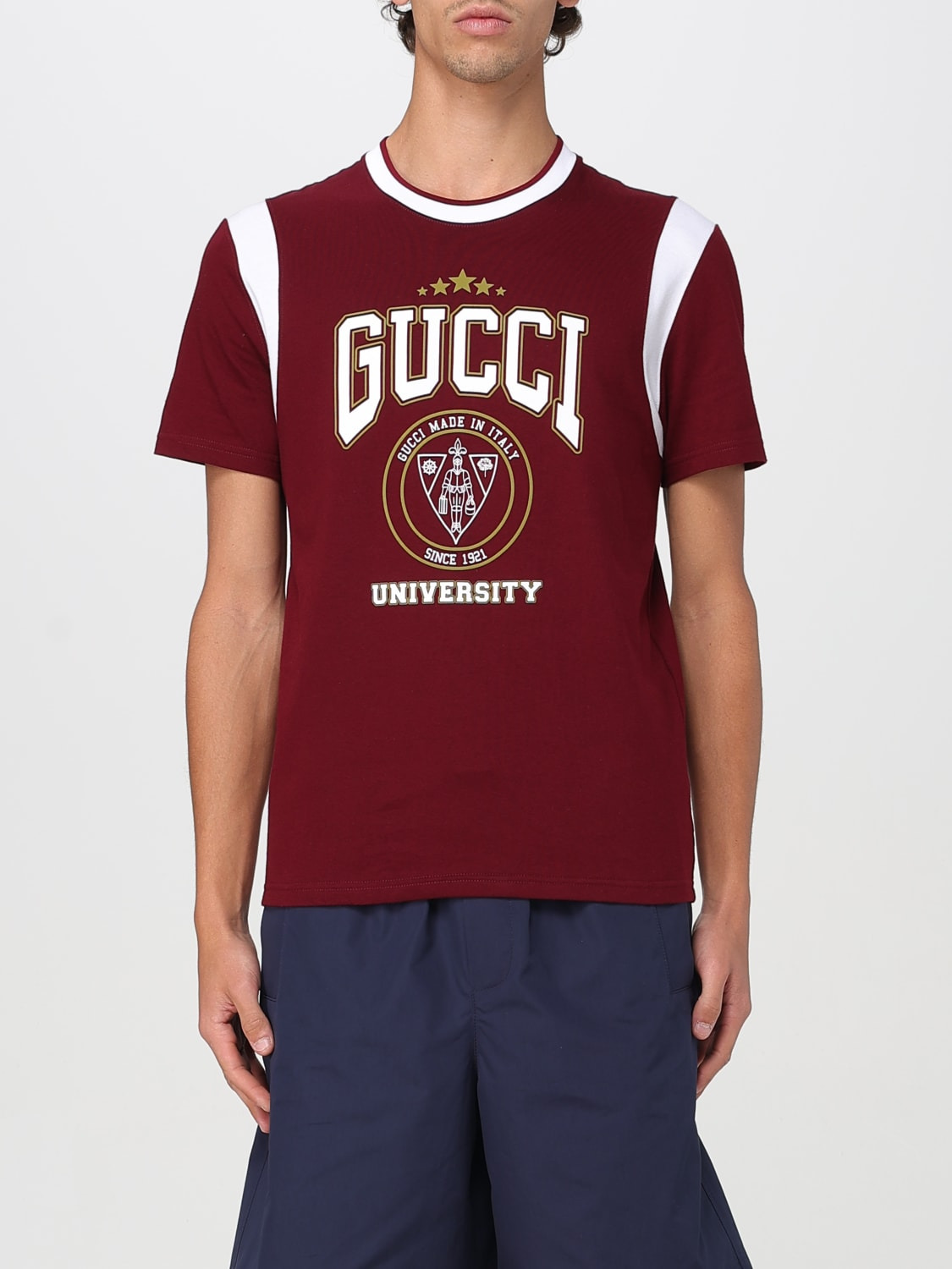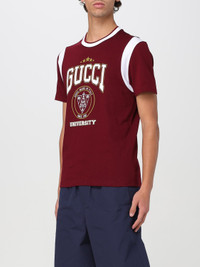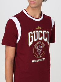 DESCRIPTION - Style: College - Logo: Print - Model: Crewneck - Neckline: Crewneck - Shoulders: Regular - Sleeves: Short - Bottom: With straight hemline - Materials: Cotton - Pattern: Emblem DETAILS AND CARE Composition not available SIZE AND FIT Sizes not available Size and fit Slim fit Designer code: 806172XJG27 6317 Giglio Code: G60269 Designer: Gucci Collection: Gucci Men Category: Clothing Gucci