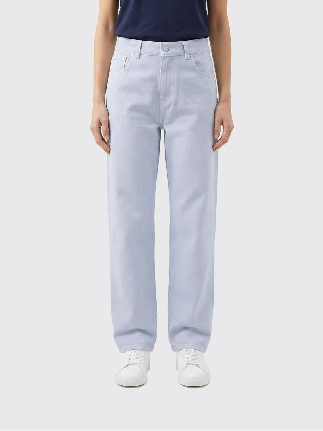 DESCRIPTION - Style: Casual, Urban-street - Pockets: 5-pocket - Waist: High waist - Bottom: With straight hemline - Closure: With button and zip - Materials: Denim - Pattern: Plain-colored DETAILS AND CARE Composition Cotton | 100% COTTON SIZE AND FIT Sizes not available Size and fit Straight Designer code: HEW03297GF172PX T0563 Giglio Code: H84749 Designer: Haikure Collection: Haikure Woman Category: Clothing Haikure