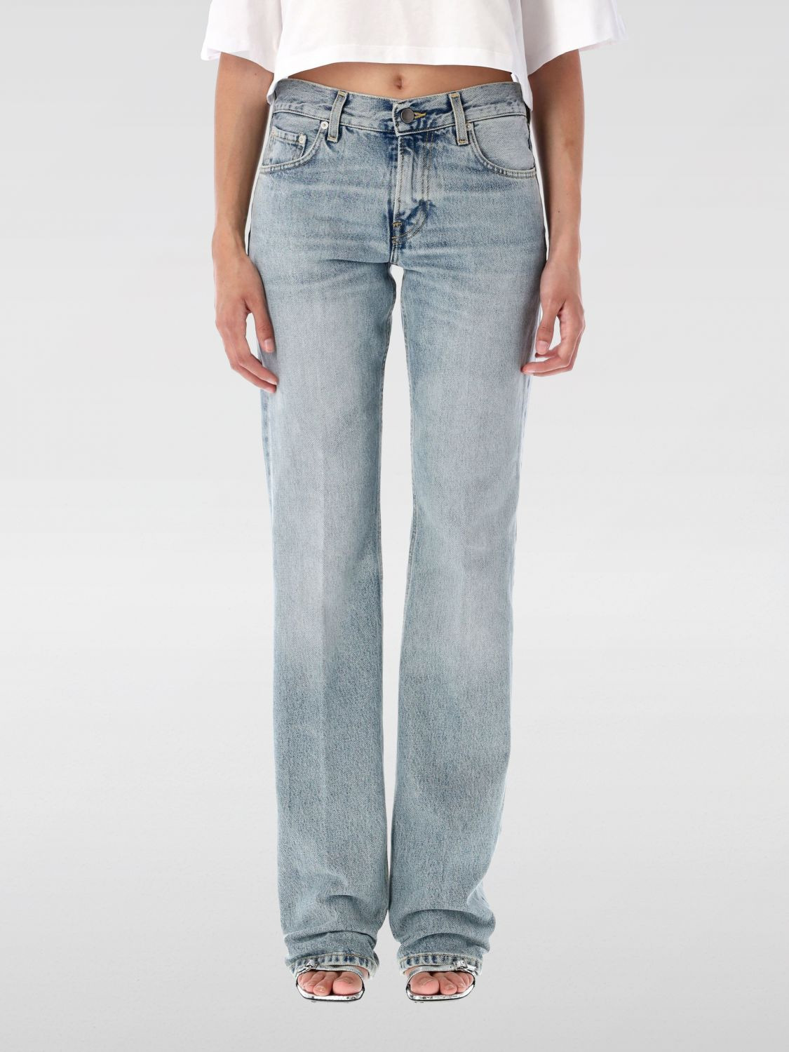 DESCRIPTION - Style: Urban-street - Pockets: 5-pocket - Waist: undefined - Bottom: With straight hemline - Closure: With button and zip - Materials: Cotton denim - Pattern: Plain-colored DETAILS AND CARE Composition 100% cotton SIZE AND FIT Sizes not available Size and fit Straight Designer code: HEW03345DF106 L0891 Giglio Code: H36119 Designer: Haikure Collection: Haikure Woman Category: Clothing Haikure
