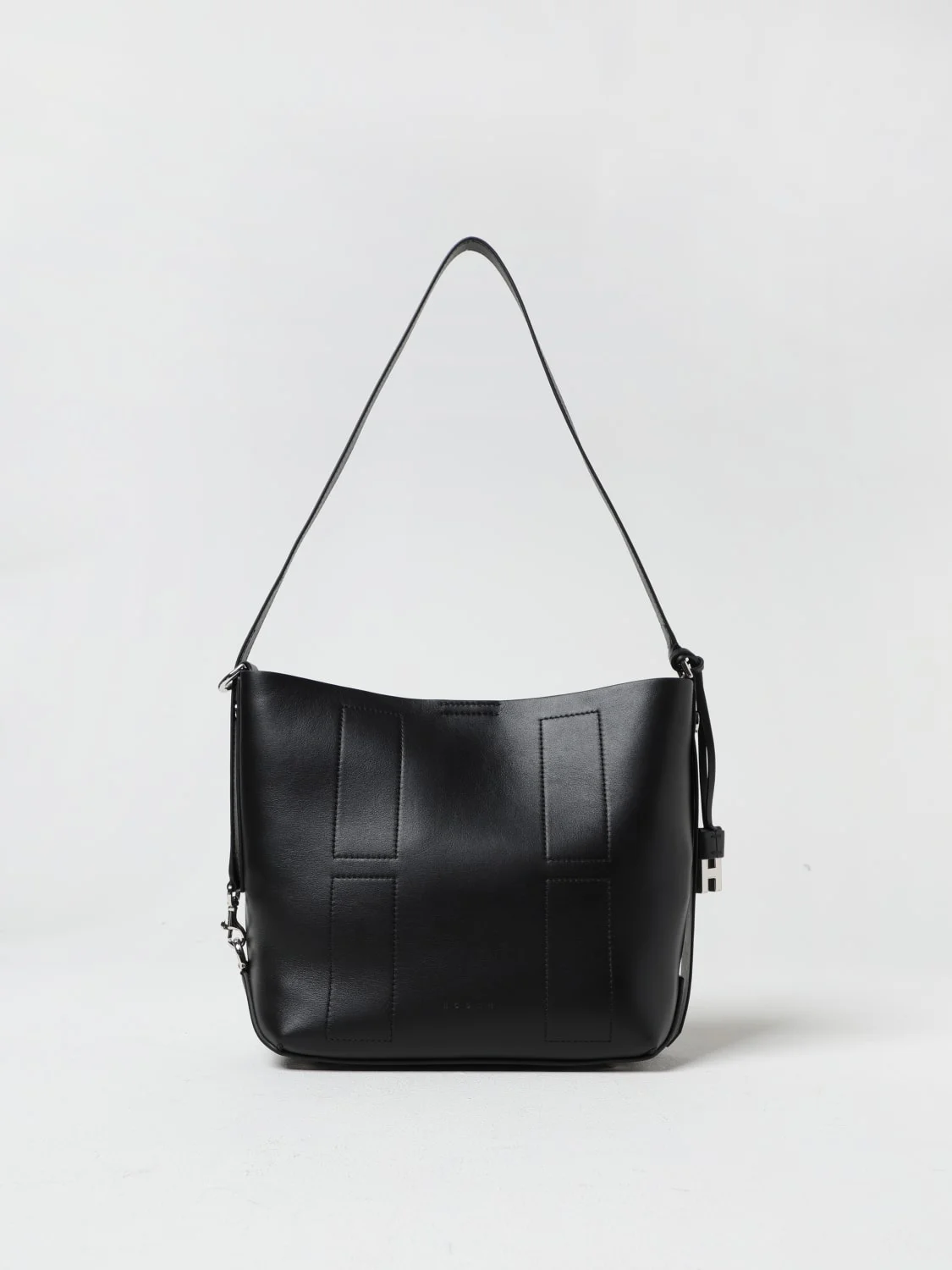 DESCRIPTION - Style: Sporty - Logo: Engraved - Lining: Suede leather - Model: Shoulder - Shape: Rectangular - Handle: Leather - Materials: Smooth calfskin - Pattern: Plain-colored DETAILS AND CARE Composition 100% calf leather SIZE AND FIT Sizes Width : 28 cm Height: 26 cm Depth: 11 cm Designer code: KBW01RS0200TZP B999 Giglio Code: G44449 Designer: Hogan Collection: Hogan Woman Category: Bags Hogan