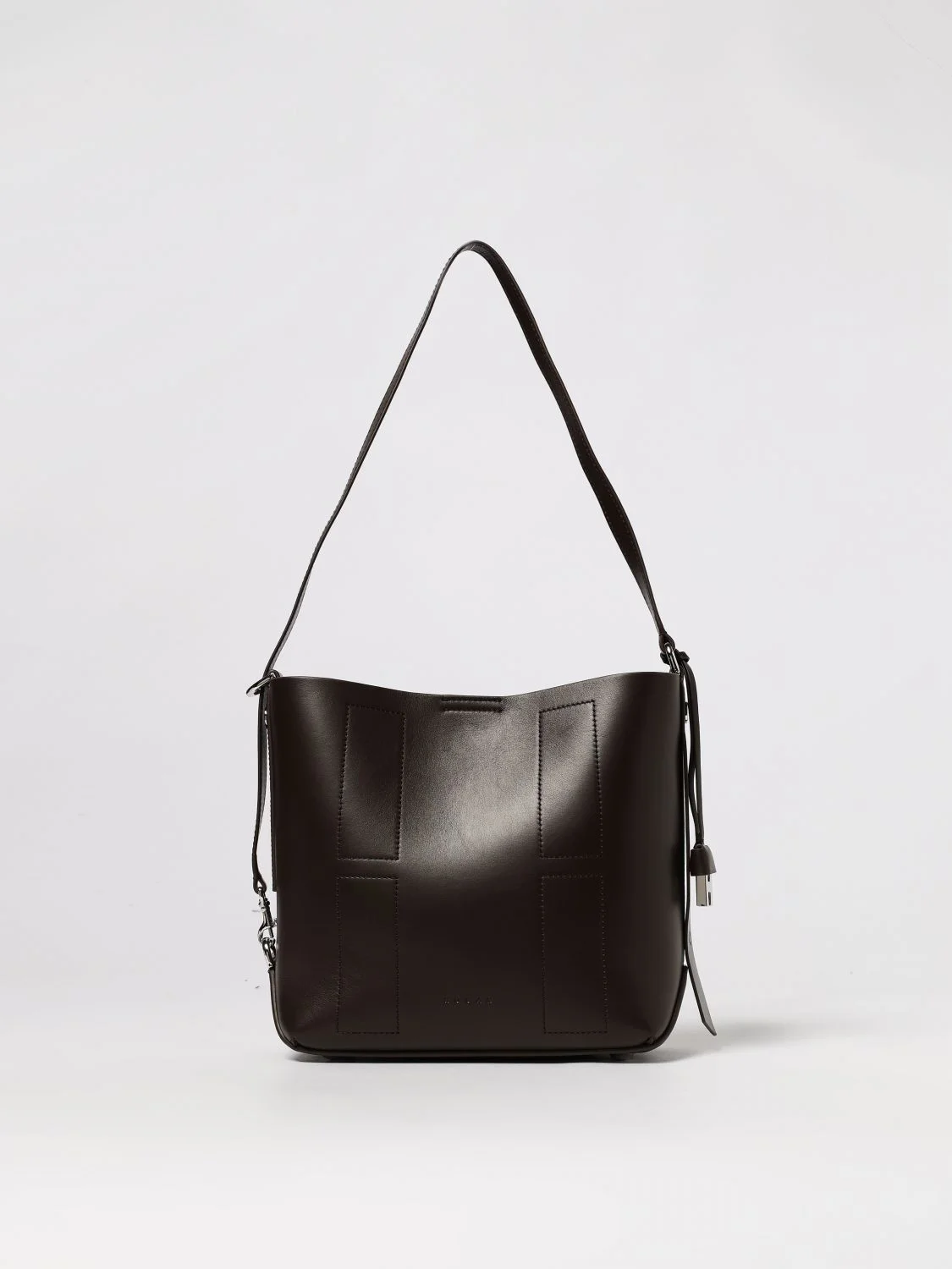 DESCRIPTION - Logo: Lettering - Lining: With logo - Model: Shoulder - Closure: With tab - Shape: Rectangular - Shoulder strap: Removable - Pockets: Flap with button - Materials: Smooth calfskin - Pattern: Plain-colored DETAILS AND CARE Composition 100%CALFSKIN SIZE AND FIT Sizes Width : 25 cm Height: 13 cm Depth: 10 cm Designer code: KBW01RI0200TZP S808 Giglio Code: H35400 Designer: Hogan Collection: Hogan Woman Category: Bags Hogan