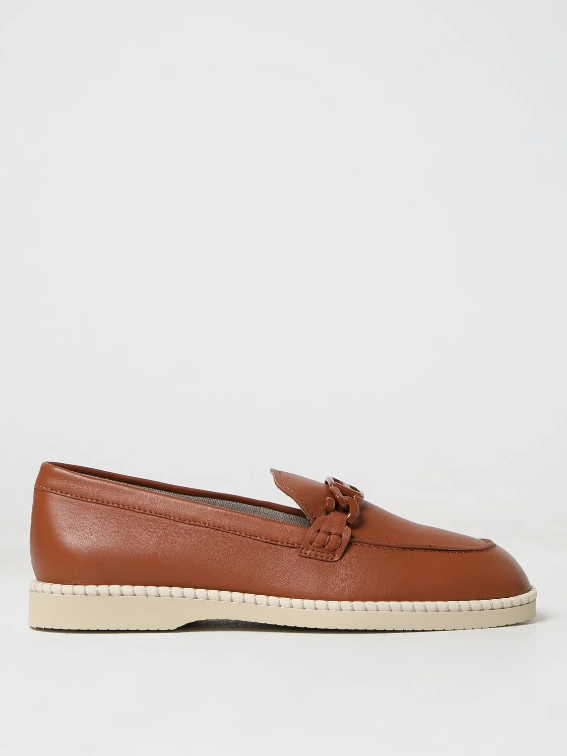 DESCRIPTION - Logo: Hogan H, Metallic, Tone-on-tone - Lining: With memory foam insole, With printed logo - Toe: Raised toe box, Round - Sole: Rubber - Heel: Low heel - Occasion: Morning - Materials: Smooth cowhide - Pattern: Plain-colored DETAILS AND CARE Composition 100MUTTON (OVIS ARIES ARIES) SIZE AND FIT Sizes Heel: 2,5 cm Designer code: HXW6420FG90LE9 S003 Giglio Code: 401685 Designer: Hogan Collection: Hogan Woman Category: Shoes Hogan