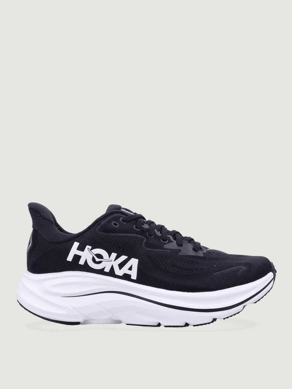 DESCRIPTION - Logo: Contrasting, Print - Lining: Mesh, With logo - Model: Lace up - Toe: Round - Ankle: Low top, Padded - Sole: Cushioned, Extralight rubber - Materials: Mesh - Pattern: Logo DETAILS AND CARE Composition 100% mesh Sole 100% rubber SIZE AND FIT Sizes not available Designer code: 1162030 BWHT Giglio Code: H22705 Designer: Hoka Collection: Hoka Men Category: Shoes Hoka