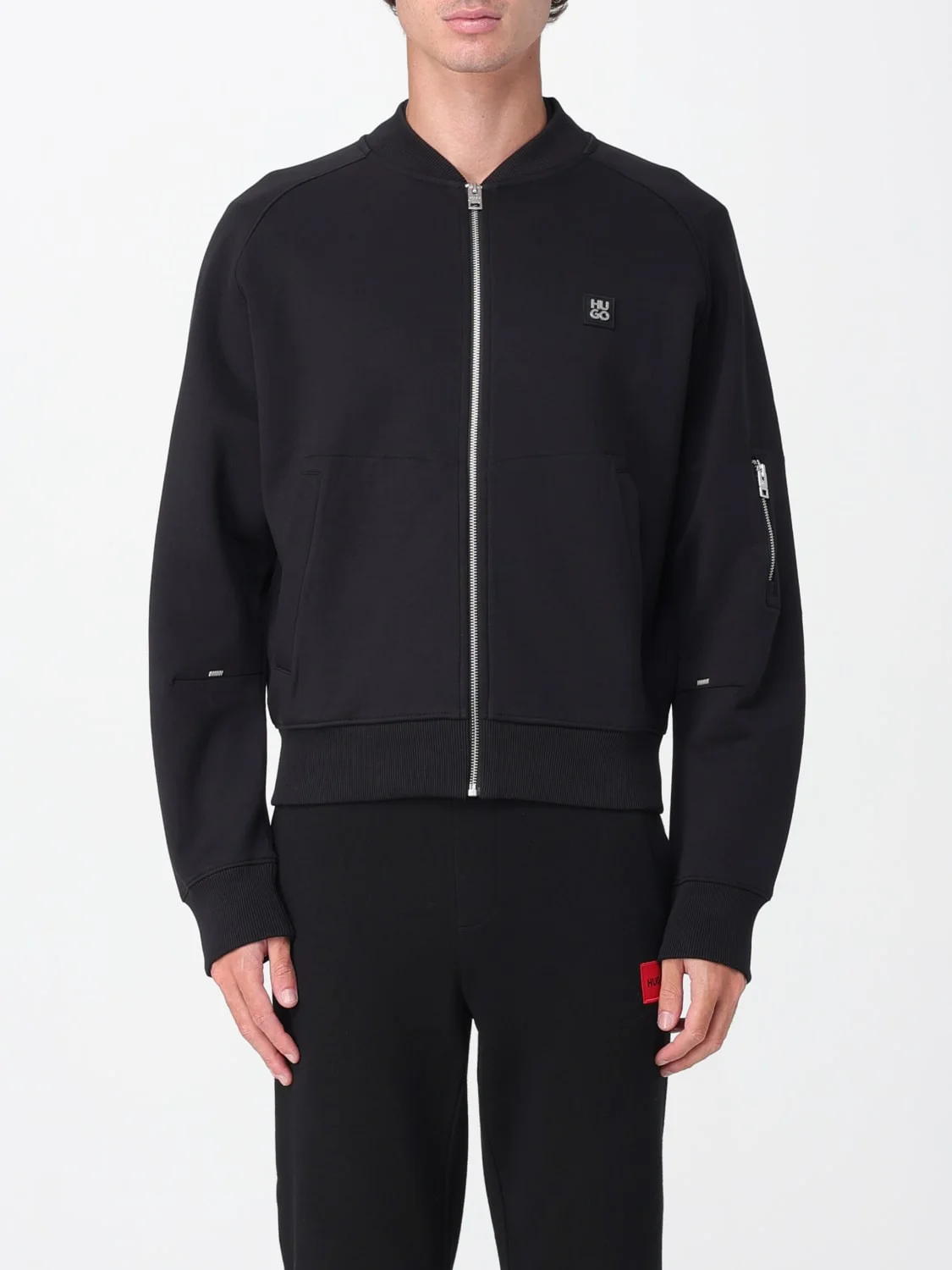 DESCRIPTION - Style: Sporty - Logo: Contrasting - Model: Crewneck - Shoulders: Relaxed - Sleeves: Long - Closure: With zip - Pockets: With zip - Bottom: With straight hemline - Neck: Bomber - Materials: Cotton blend - Pattern: Logo DETAILS AND CARE Composition 82 COTONE 13 POLIESTERE 5 ELASTAN SIZE AND FIT Sizes not available Size and fit Relaxed fit Designer code: 50542590 001 Giglio Code: H28679 Designer: Hugo Collection: Hugo Men Category: Clothing Hugo