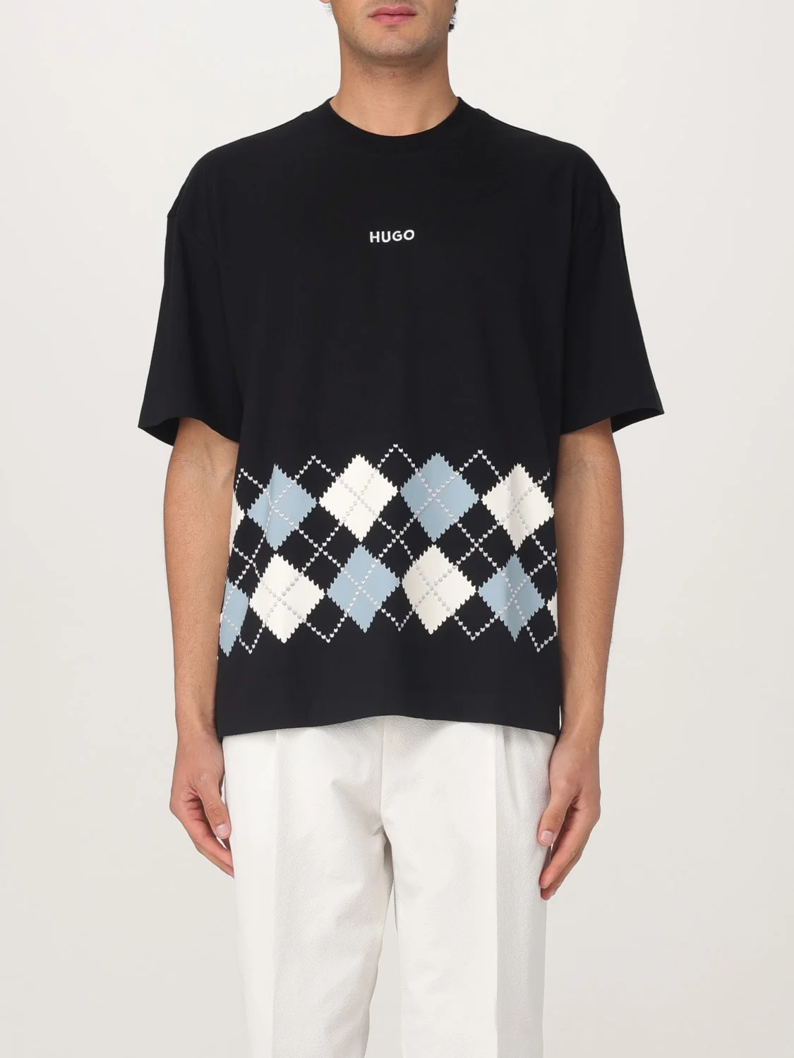 DESCRIPTION - Style: College - Logo: Contrasting - Model: Crewneck - Neckline: Crewneck - Shoulders: Relaxed - Sleeves: Short - Bottom: With straight hemline - Materials: Cotton - Pattern: Diamond DETAILS AND CARE Composition 100 AF SIZE AND FIT Sizes not available Size and fit Regular fit Designer code: 50541773 001 Giglio Code: 426835 Designer: Hugo Collection: Hugo Men Category: Clothing Hugo