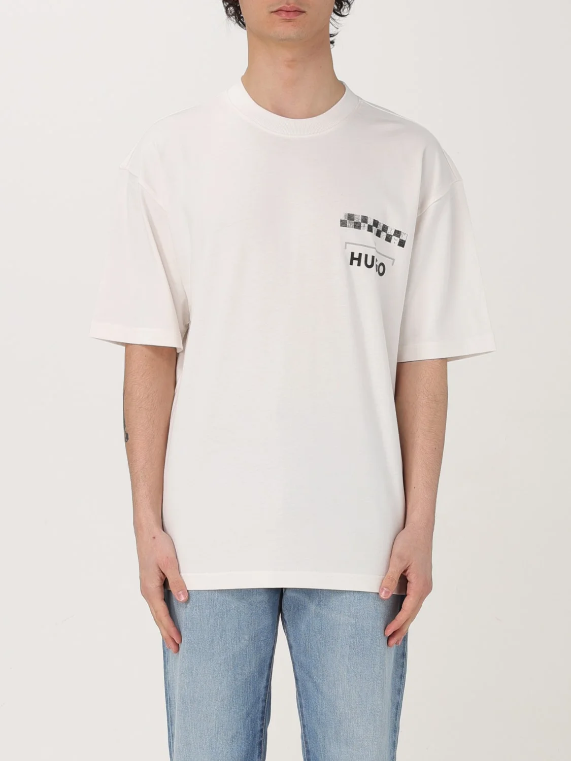 DESCRIPTION - Style: Sporty - Logo: Contrasting - Model: Crewneck - Neckline: Crewneck - Shoulders: Relaxed - Sleeves: Short - Bottom: With straight hemline - Materials: Cotton - Pattern: Graphic DETAILS AND CARE Composition 100% Cotton SIZE AND FIT Sizes not available Size and fit Relaxed fit Designer code: 50531758 102 Giglio Code: 426712 Designer: Hugo Collection: Hugo Men Category: Clothing Hugo