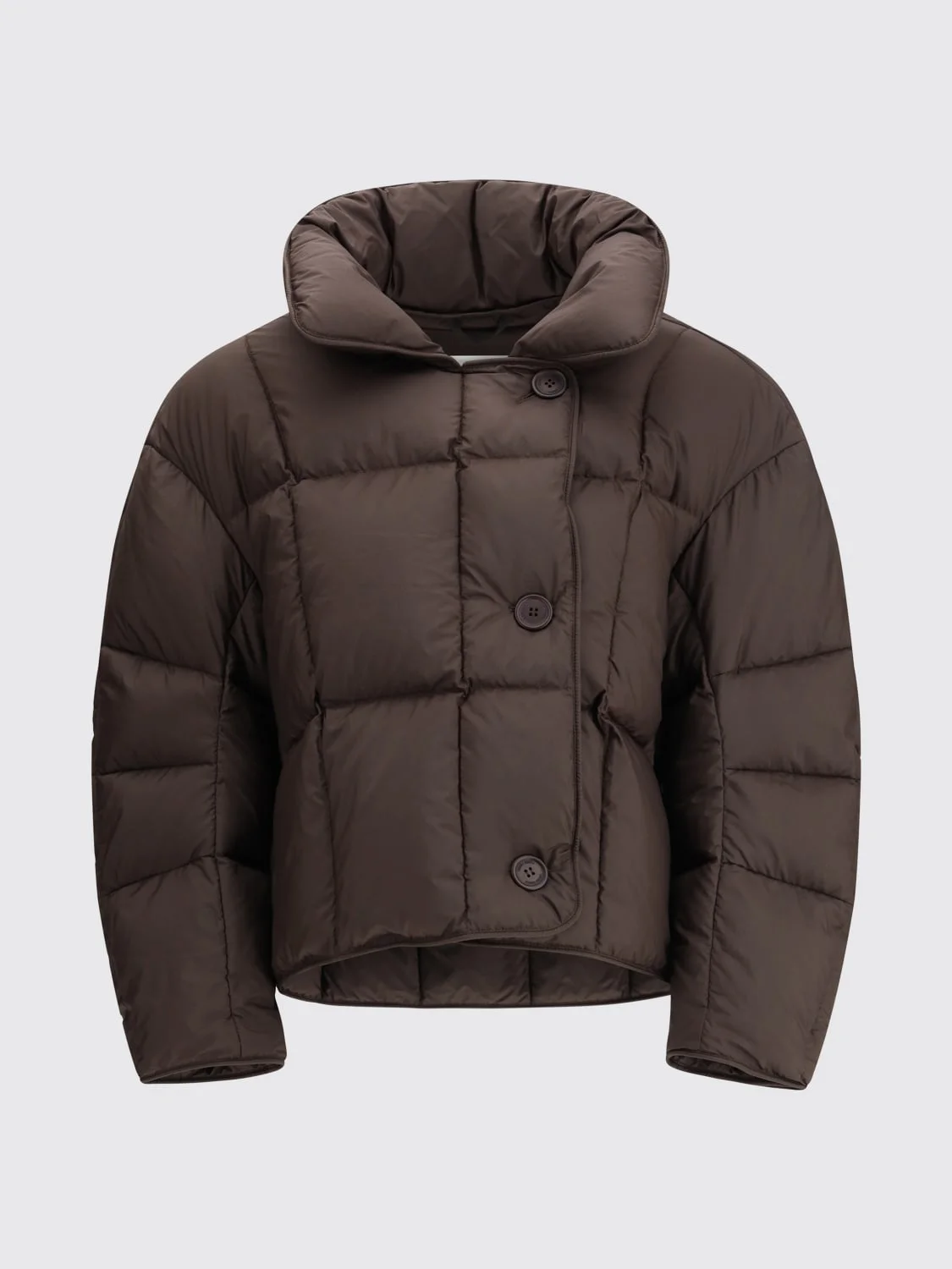 DESCRIPTION - Style: Classic - Technical performances: Thermal resistance, Waterproof - Model: Padded, Quilted - Neck: Classic - Shoulders: Relaxed - Sleeves: Long - Closure: With buttons - Bottom: With straight hemline - Length: Short jackets - Materials: Polyester - Pattern: Plain-colored DETAILS AND CARE Composition GENERAL NYLON 100 - SIZE AND FIT Sizes not available Size and fit Regular fit Designer code: COZYCLOUDJACKET MICROBROWN Giglio Code: H72653 Designer: Ienki Ienki Collection: Ienki Ienki Woman Category: Clothing Ienki Ienki