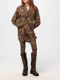 DESCRIPTION - Style: Casual - Neckline: V neckline - Shoulders: Padded, Regular - Closure: Back closure with zip - Bottom: With straight hemline - Length: Mini dresses - Occasion: Evening and party dresses - Sleeves: Long sleeve dresses - Materials: Silk - Pattern: Animal print DETAILS AND CARE Composition 91% silk, 9% elastane SIZE AND FIT Sizes not available Size and fit Regular fit Designer code: RO0648FAB4J07I 99LE Giglio Code: G21771 Designer: Isabel Marant Collection: Isabel Marant Woman Category: Clothing Isabel Marant