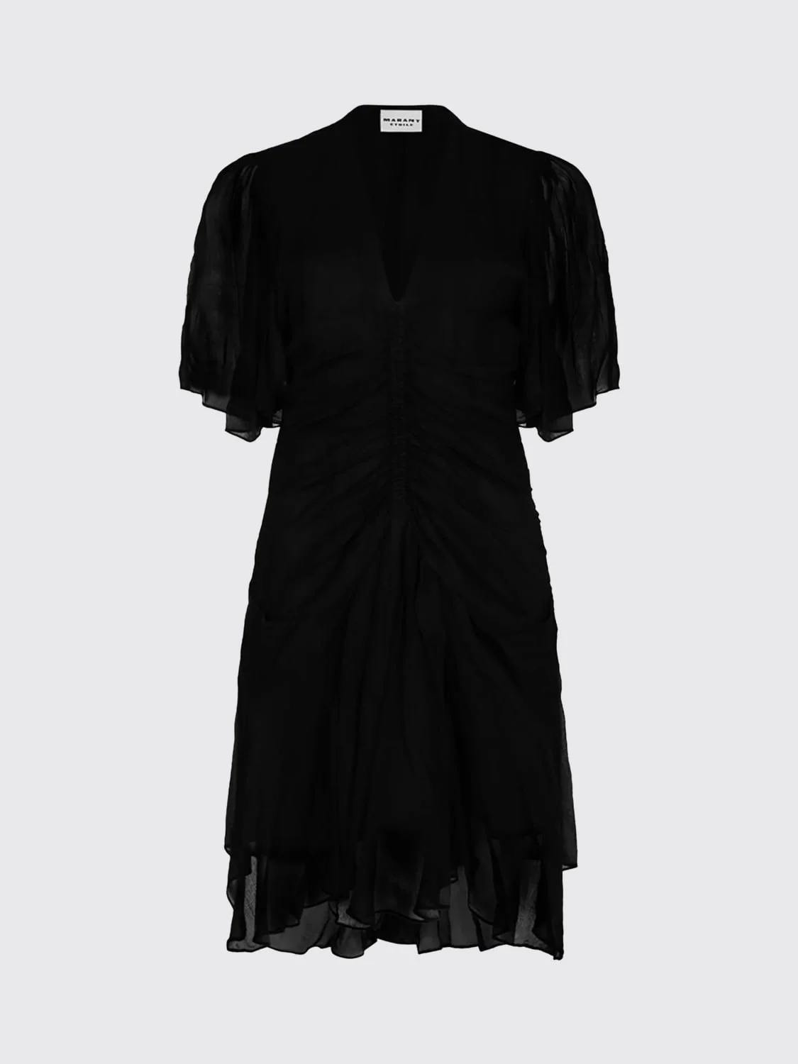 DESCRIPTION - Style: Casual, Ethnic - Neckline: V neckline - Shoulders: Regular - Bottom: With asymmetric hemline - Model: Curled - Length: Mini dresses - Occasion: Morning dresses - Sleeves: Short-sleeve dresses - Materials: Viscose - Pattern: Graphic DETAILS AND CARE Composition 100% viscose SIZE AND FIT Sizes not available Size and fit Regular fit Designer code: RO0330FAC1J07E 01BK Giglio Code: G44466 Designer: Isabel Marant Etoile Collection: Clothing Isabel Marant Etoile Category: Clothing > Dress