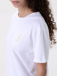 DESCRIPTION - Style: Contemporary, Sporty - Logo: Embroidered - Model: Crewneck - Neckline: Crewneck - Shoulders: Relaxed - Sleeves: Short - Bottom: With straight hemline - Materials: Cotton - Pattern: Plain-colored, All-over logo DETAILS AND CARE Composition 100% cotton SIZE AND FIT Sizes not available Size and fit Regular fit Designer code: TS0070FAA1N98E 20WH Giglio Code: G50519 Designer: Isabel Marant Etoile Collection: Isabel Marant Etoile Woman Category: Clothing Isabel Marant Etoile