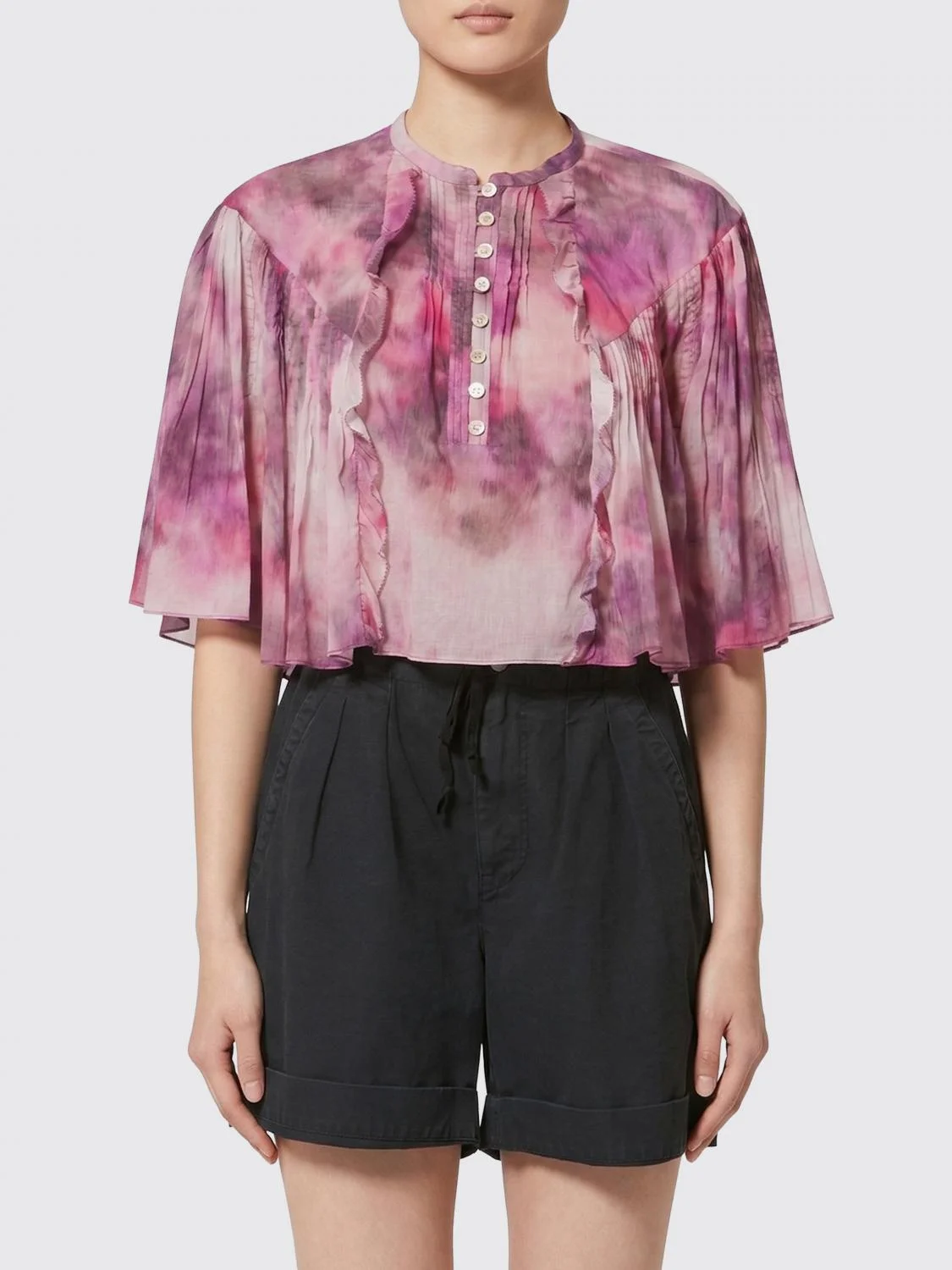 DESCRIPTION - Style: Casual, Vintage - Details: With trims - Model: Crewneck - Neckline: Crewneck - Shoulders: Relaxed - Closure: With buttons - Bottom: With straight hemline - Occasion: Morning - Sleeves: Short sleeve tops - Materials: Cotton voile - Pattern: Abstract DETAILS AND CARE Composition not available SIZE AND FIT Sizes not available Size and fit Regular fit Designer code: HT0854FAD1J13E 40PK Giglio Code: H99012 Designer: Isabel Marant Etoile Collection: Clothing Isabel Marant Etoile Category: Clothing > Top