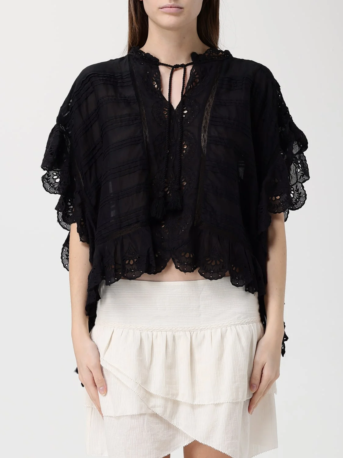 DESCRIPTION - Style: Casual, Chic - Neckline: V neckline - Shoulders: Relaxed - Closure: With bands to tie - Bottom: With flounce - Sleeves: Short sleeve tops - Materials: Cotton - Pattern: Embroidery, Plain-colored DETAILS AND CARE Composition not available SIZE AND FIT Sizes not available Size and fit Regular fit Designer code: HT0768FAD1J05E 01BK Giglio Code: H89108 Designer: Isabel Marant Etoile Collection: Clothing Isabel Marant Etoile Category: Clothing > Top