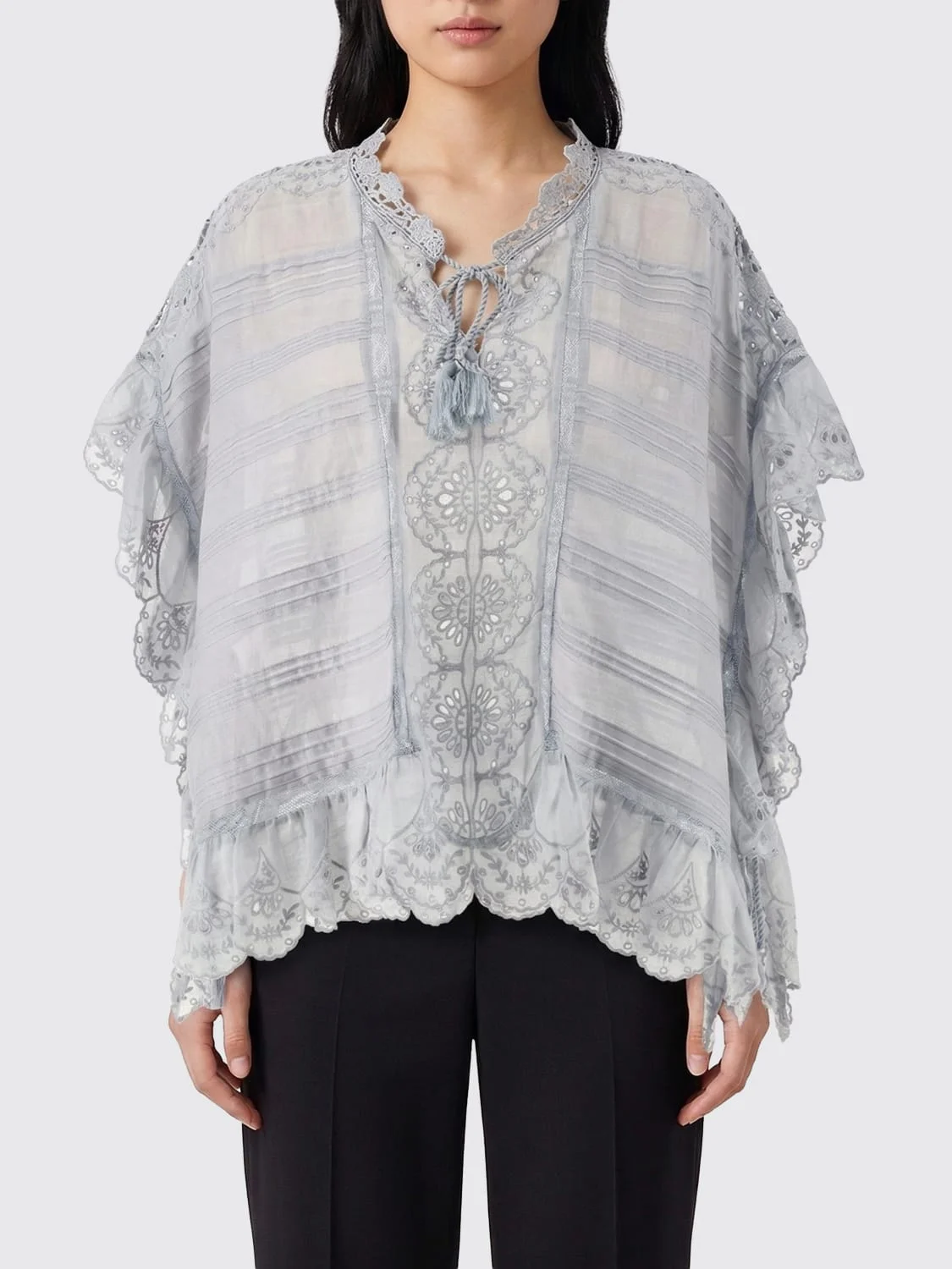 DESCRIPTION - Style: Casual, Chic - Neckline: V neckline - Shoulders: Relaxed - Closure: With bands to tie - Bottom: With flounce - Sleeves: Short sleeve tops - Materials: Cotton - Pattern: Embroidery, Plain-colored DETAILS AND CARE Composition not available SIZE AND FIT Sizes not available Size and fit Regular fit Designer code: HT0768FAD1J05E 30LU Giglio Code: H89108 Designer: Isabel Marant Etoile Collection: Clothing Isabel Marant Etoile Category: Clothing > Top