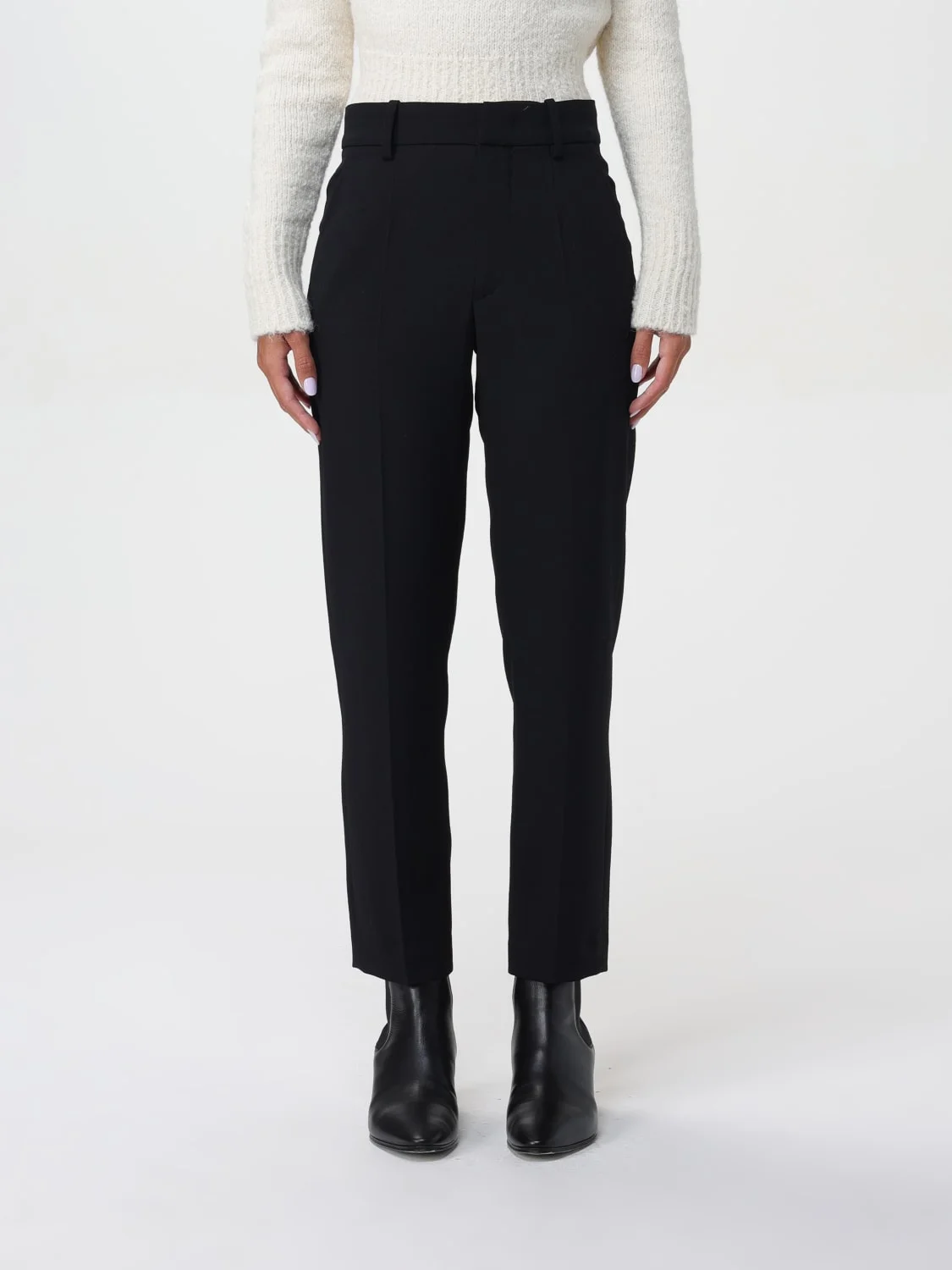 DESCRIPTION - Pockets: Back slit with button, Slit pocket - Waist: High , With loops - Bottom: With straight hemline - Materials: Viscose - Pattern: Plain-colored DETAILS AND CARE Composition MATIERE PRINCIPALE:62% POLYESTER 30% POLYESTE SIZE AND FIT Sizes not available Size and fit Skinny fit, Straight leg Designer code: PA0382FCB3F02I 01BK Giglio Code: F85340 Designer: Isabel Marant Collection: Isabel Marant Woman Category: Clothing Isabel Marant