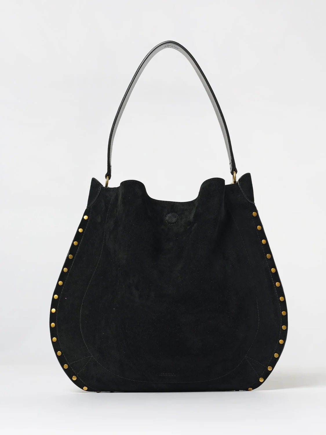 DESCRIPTION - Logo: Engraved - Details: With studs - Lining: With logo, With removable pouch - Model: Shoulder - Closure: Magnetic - Shape: Round - Handle: Flat - Materials: Suede calfskin - Pattern: Embroidery, Plain-colored DETAILS AND CARE Composition camoscio SIZE AND FIT Sizes Width : 43 cm Height: 39 cm Depth: 1 cm Designer code: PP0200FAB2C03M 01BK Giglio Code: H16293 Designer: Isabel Marant Collection: Isabel Marant Woman Category: Bags Isabel Marant