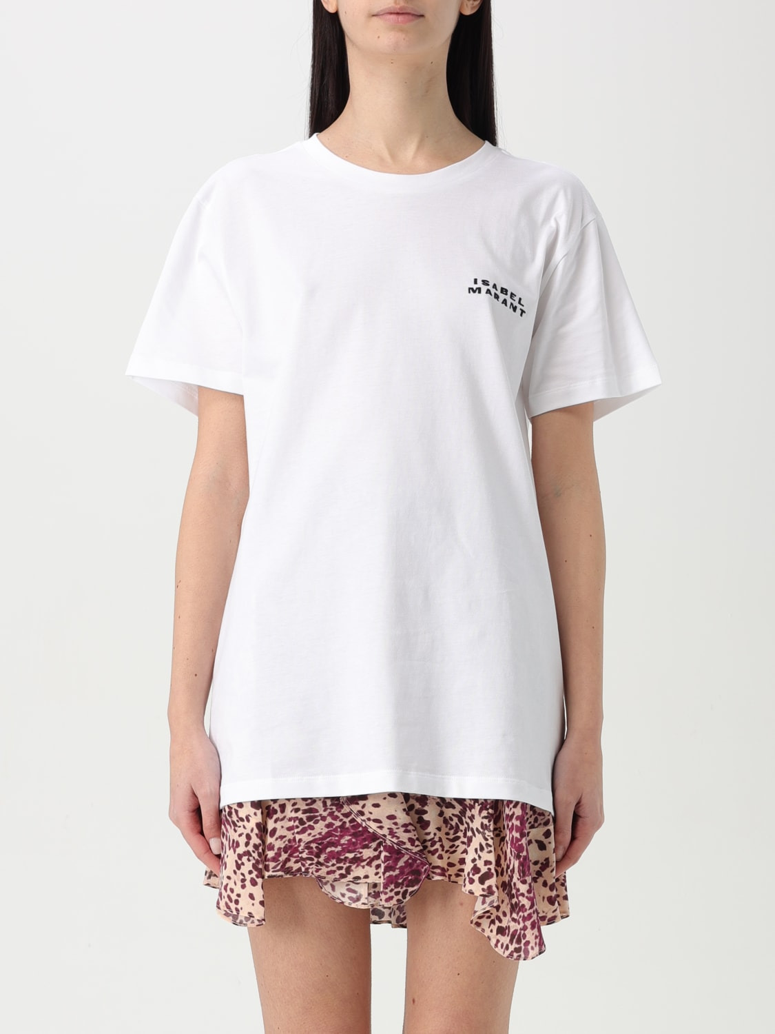 DESCRIPTION - Style: Basic - Neckline: Crewneck - Shoulders: Relaxed - Sleeves: Short - Bottom: With straight hemline - Materials: Cotton - Pattern: Plain-colored DETAILS AND CARE Composition MATIERE PRINCIPALE:100% COTON (1) SIZE AND FIT Sizes not available Size and fit Regular fit Designer code: TS0103FAA2N44I 20WH Giglio Code: G47528 Designer: Isabel Marant Collection: Isabel Marant Woman Category: Clothing Isabel Marant