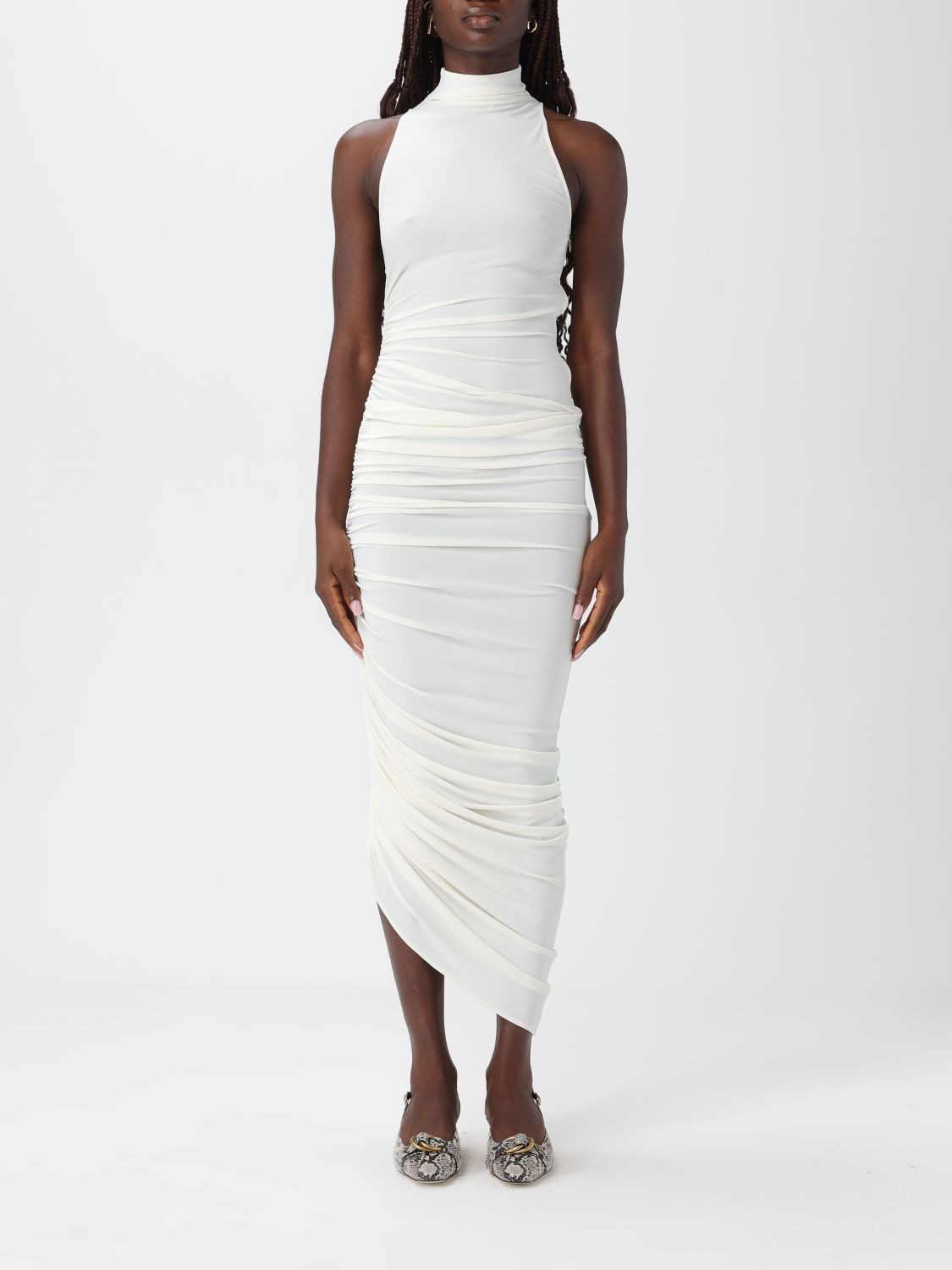 DESCRIPTION - Style: Minimal - Model: Draped - Neck: High - Shoulders: Regular - Bottom: With asymmetric hemline - Length: Long dresses - Occasion: Evening and party dresses - Sleeves: Off-the-shoulder dresses - Materials: Jersey - Pattern: Plain-colored DETAILS AND CARE Composition AC 75% PA 20% EA 5% SIZE AND FIT Sizes not available Size and fit Slim fit Designer code: DRW00722AW00211 100 Giglio Code: H36588 Designer: Jacquemus Collection: Jacquemus Woman Category: Clothing Jacquemus