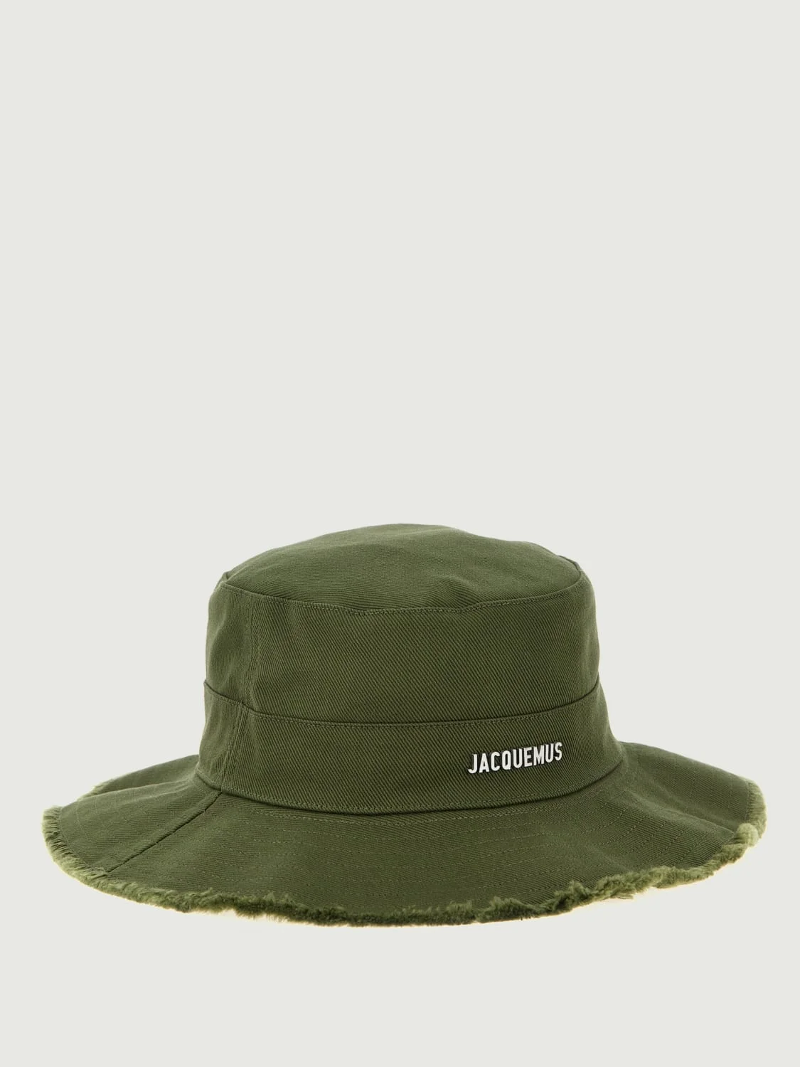 DESCRIPTION - Logo: Metallic - Model: Fisherman - Bottom: Fringed - Components: Large brim - Details: With adjustable drawstrings - Materials: Cotton - Pattern: Logo, Plain-colored DETAILS AND CARE Composition 100% cotton SIZE AND FIT Sizes not available Designer code: ACU00002BW00092 560 Giglio Code: H23281 Designer: Jacquemus Collection: Jacquemus Woman Category: Accessories Jacquemus