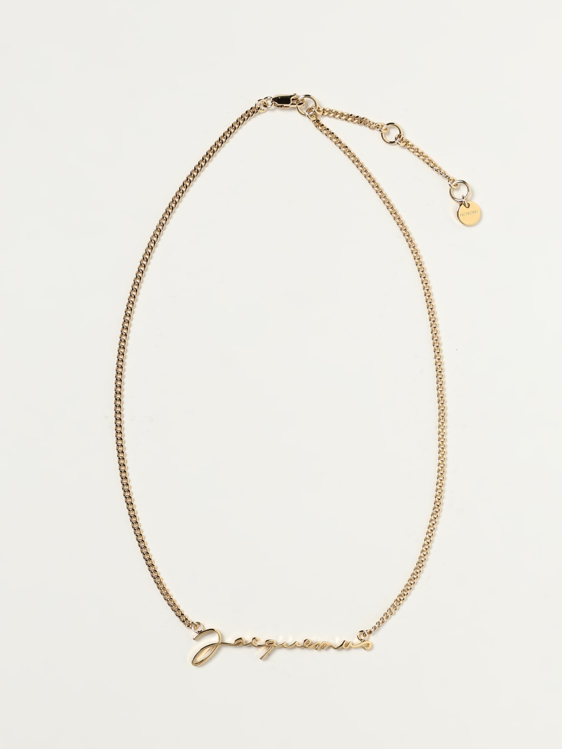 DESCRIPTION - Logo: Lettering - Model: Crewneck - Closure: With snap-hook - Materials: Brass - Pattern: Logo DETAILS AND CARE Composition 100 % BRASS SIZE AND FIT Sizes not available Designer code: JWW00333AOT4005 280 Giglio Code: H19429 Designer: Jacquemus Collection: Jacquemus Woman Category: Accessories Jacquemus
