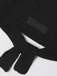 DESCRIPTION - Logo: Tone-on-tone, With logo - Closure: With bands to tie - Shape: Triangle - Model: Ribbed - Materials: Alpaca wool, Polyamide - Pattern: Plain-colored DETAILS AND CARE Composition 49% ALPACA WOOL 30% POLYAMIDE 21% WOOL SIZE AND FIT Sizes not available Designer code: ACU00669AK00227 990 Giglio Code: H45197 Designer: Jacquemus Collection: Jacquemus Woman Category: Accessories Jacquemus