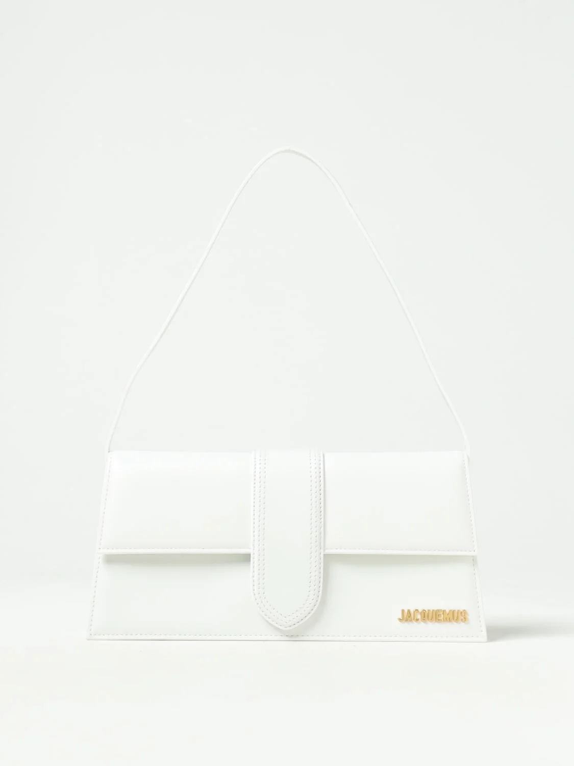 DESCRIPTION - Logo: Metallic - Model: Shoulder - Closure: With button flap - Pockets: Back patch pocket - Shape: Flared, Rectangular - Handle: Flat - Materials: Smooth calfskin - Pattern: Logo, Plain-colored DETAILS AND CARE Composition not available SIZE AND FIT Sizes Width : 28 cm Height: 13 cm Depth: 6 cm Handle height: 23 cm Designer code: 221BA0133060 100 Giglio Code: G50802 Designer: Jacquemus Collection: Jacquemus Woman Category: Bags Jacquemus