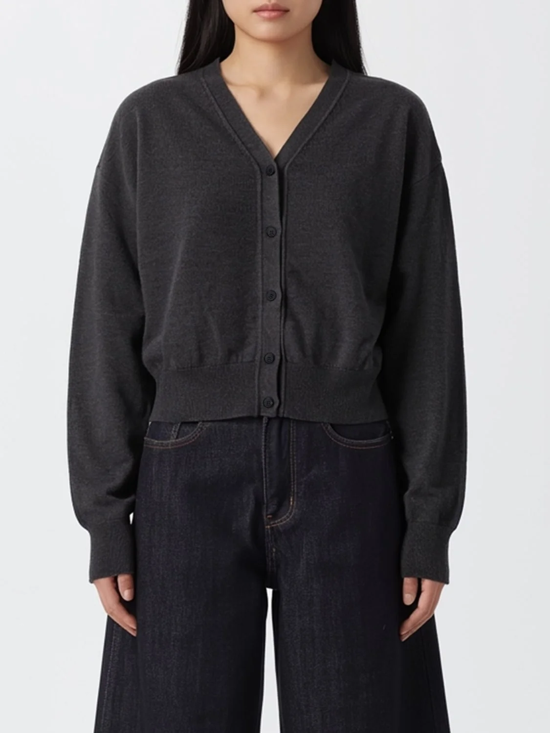 DESCRIPTION - Style: Basic, Casual - Neckline: V neckline - Shoulders: Relaxed - Sleeves: Long - Cuffs: Ribbed - Closure: With buttons - Bottom: With ribbed edges - Materials: Merino wool - Pattern: Plain-colored DETAILS AND CARE Composition 96% WE.MERINO WOOL 4% PA.POLYAMIDE/NYLON SIZE AND FIT Sizes not available Size and fit Regular fit Designer code: CDW00816AK00299 970 Giglio Code: H29875 Designer: Jacquemus Collection: Jacquemus Woman Category: Clothing Jacquemus
