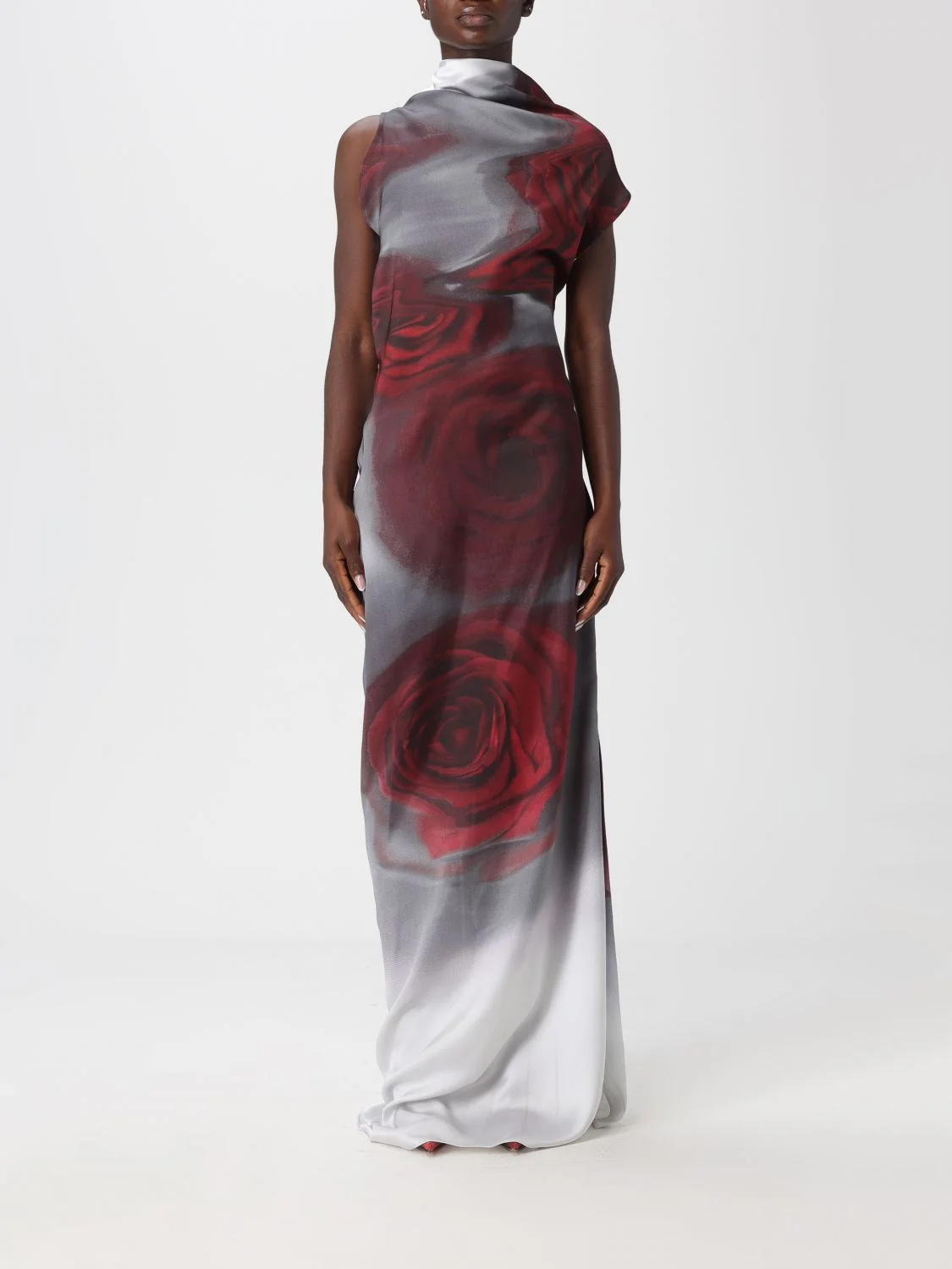 THE RED DRAPED BLURRY ROSES DRESS