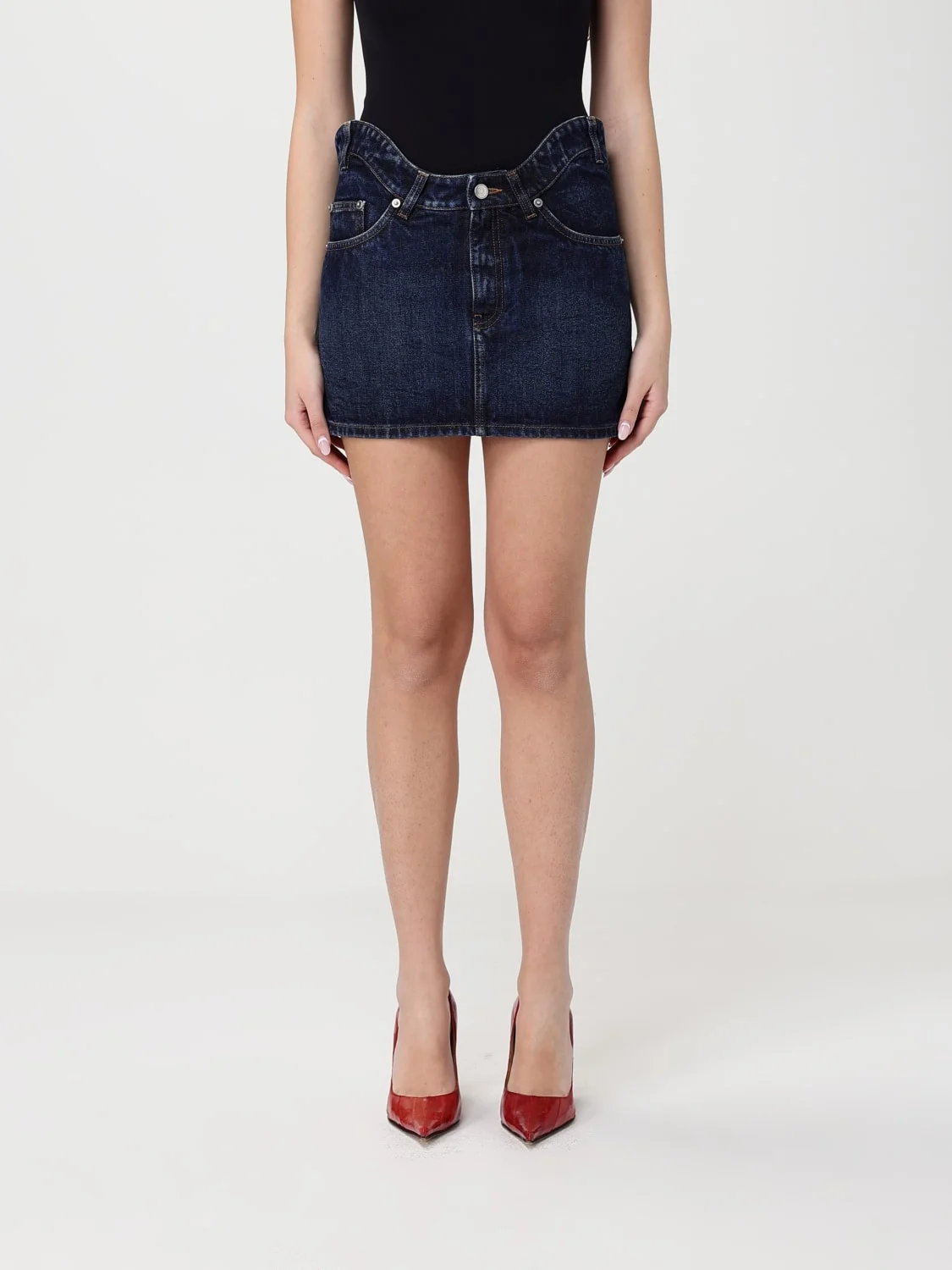 THE CURVED DENIM MINI SKIRT